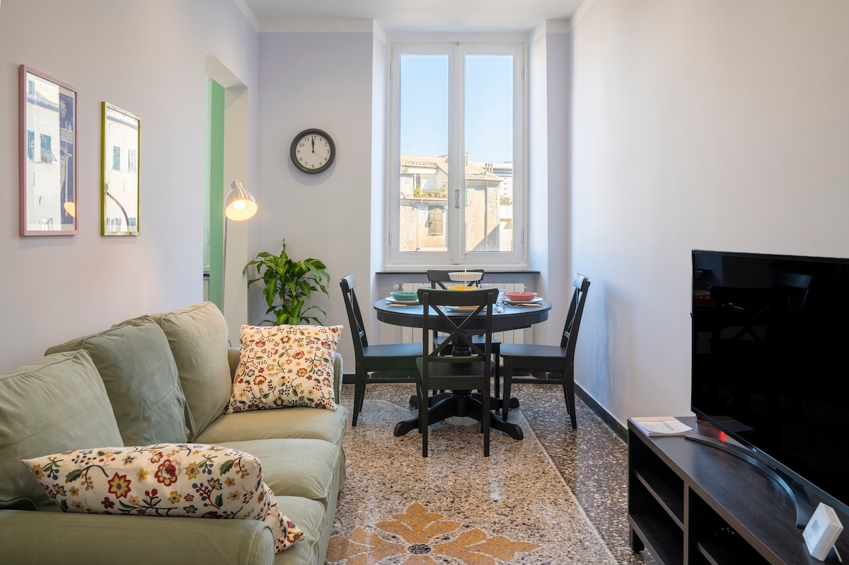 This completely restructured modern apartment, located in the middle of the historic centre of Genoa, presents itself as an open space with a loft, equipped with a queen sized bed, while in the living room there is a sofa bed. Equipped with every type of comfort, it's ideal for couples or families. Nearby there are supermarkets, shops of every kind, cafés, traditional restaurants, focaccia bread shops, metro and bus stops.