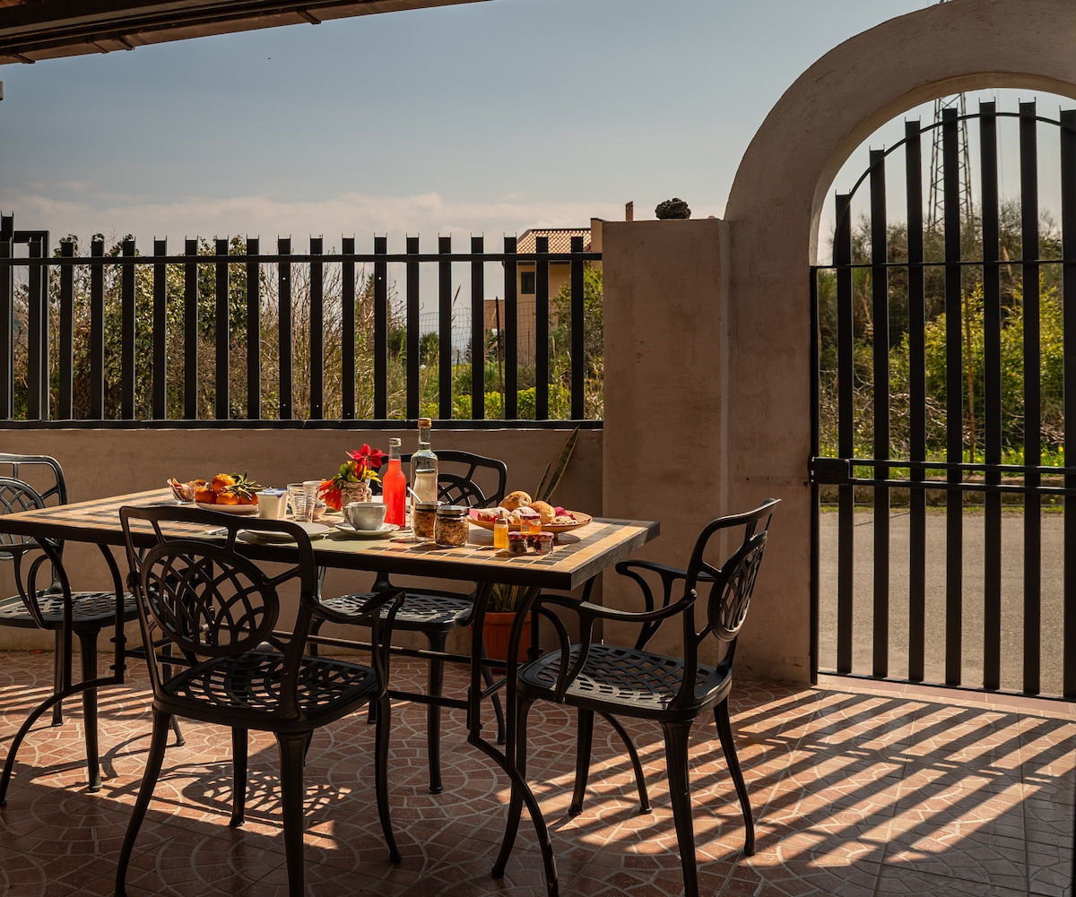 A country house with large terraces, a large yard with parking in the courtyard, a flower garden with important native essences, a vegetable garden cultivated by the owners with the main seasonal products, sometimes available to guests, a small vineyard of Nerello Mascalese for a small family production of wine, a large orchard for seasonal fruit.