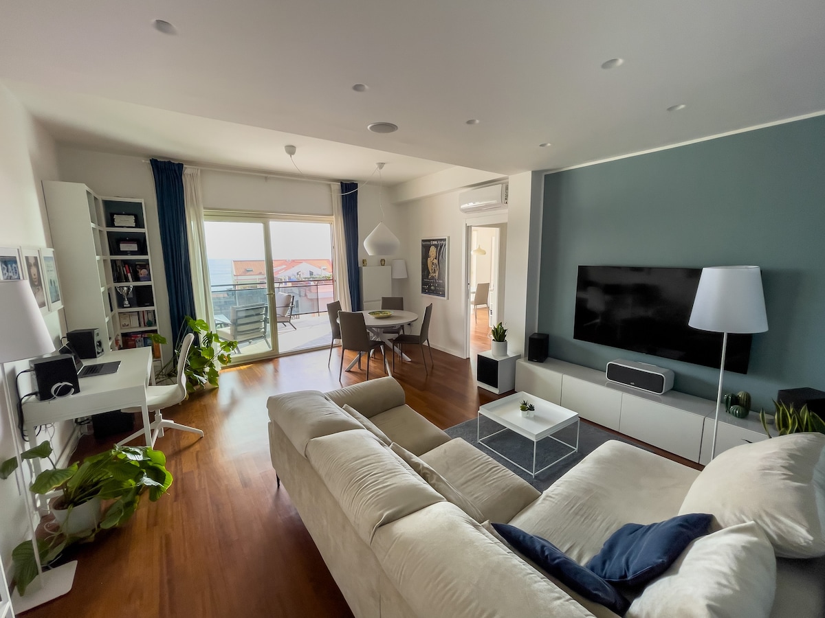 Accogliente ed elegante appartamento in profonda sintonia con il mare e il cinema. Situato nella splendida cornice di Sant’Agata, l'appartamento è posizionato al terzo piano fronte mare di un palazzo nuovissimo. È dotato di un salotto, una cucina, una camera da letto, un bagno, un ampio balcone dedicato alla lavanderia e una veranda con salotto esterno e tavolo da pranzo per gustare al meglio aperitivi, pranzi e cene di fronte all’incantevole panorama mozzafiato dello Stretto di Messina.