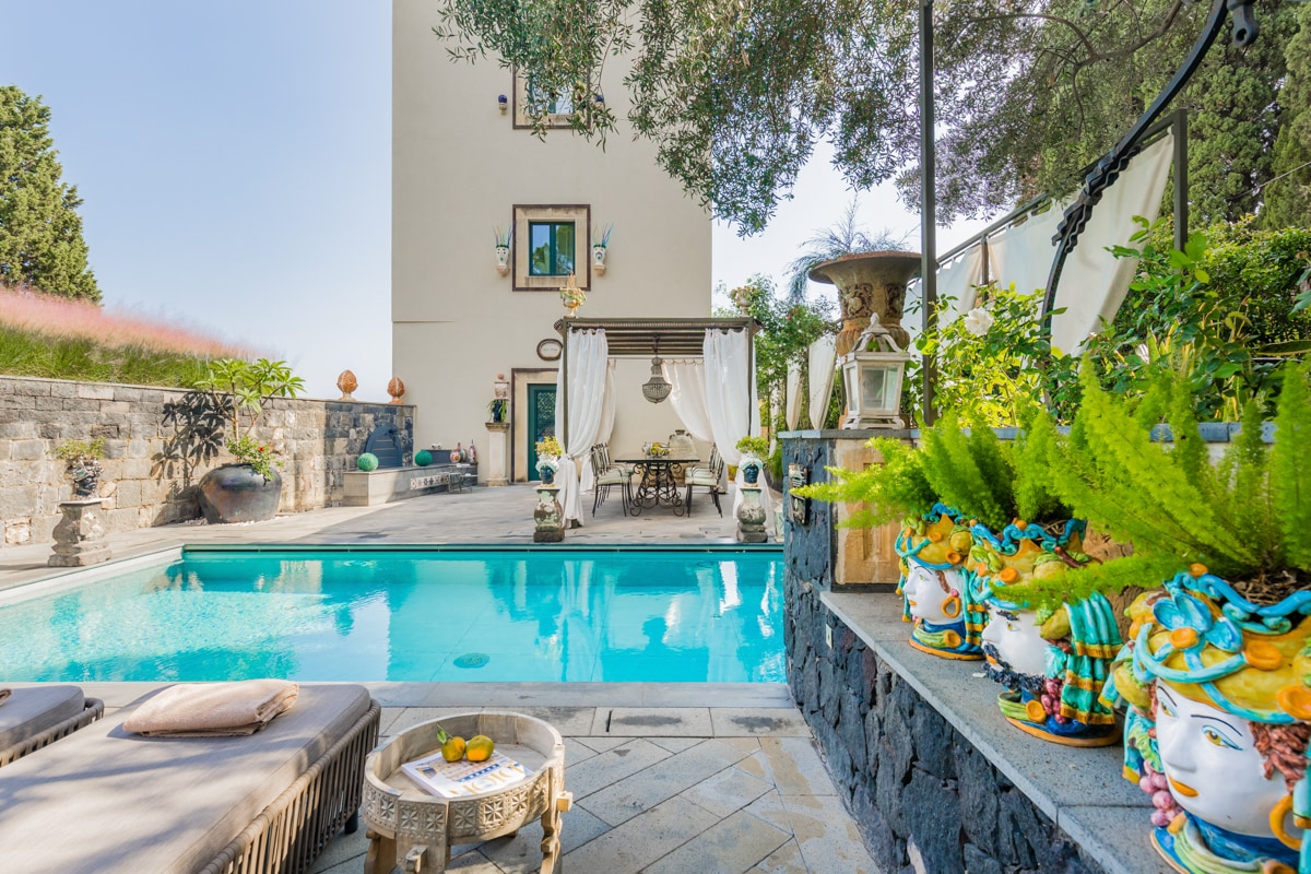 From the center of Taormina, this luxurious Italian villa enjoys beautiful sea vistas and private gardens. It's also within walking distance of the beach. Mount Etna is about an hour from home if you're up for a drive. In Taormina, spend your days lounging by the pool, sipping wine on the scenic balcony, and dining al fresco at sunset. Or walk to Corso Umberto for dinner, drinks, and dancing. Copyright © Luxury Retreats. All rights reserved.