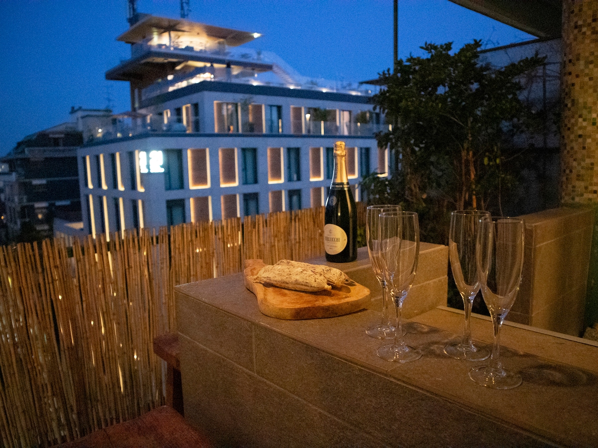 Stay in a sleek sunlit penthouse with a panoramic private terrace in the heart of Navigli- Milan’s most bohemian and vibrant district. With spectacular views over the city skyline, enjoy your outdoor bar corner equipped with barbecue, dine under the stars, or gaze at unforgettable sunsets from either the terrace or your bedroom. A refined, design-forward yet functional space, perfect for both business and leisure, equipped with all comforts for a truly unparalleled experience.