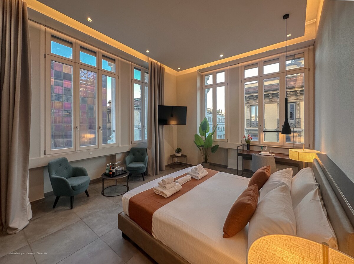 Experience Milan from a simply unique position. This luxurious suite with private bathroom and equipped kitchen is just a few steps from Piazza Duomo, in the vibrant heart of the city. Elegant, bright and with attention to detail, it offers a double bed, work area, TV and maximum privacy. Ideal for couples or business travelers who want comfort, independence and an exclusive experience in the historic center. .