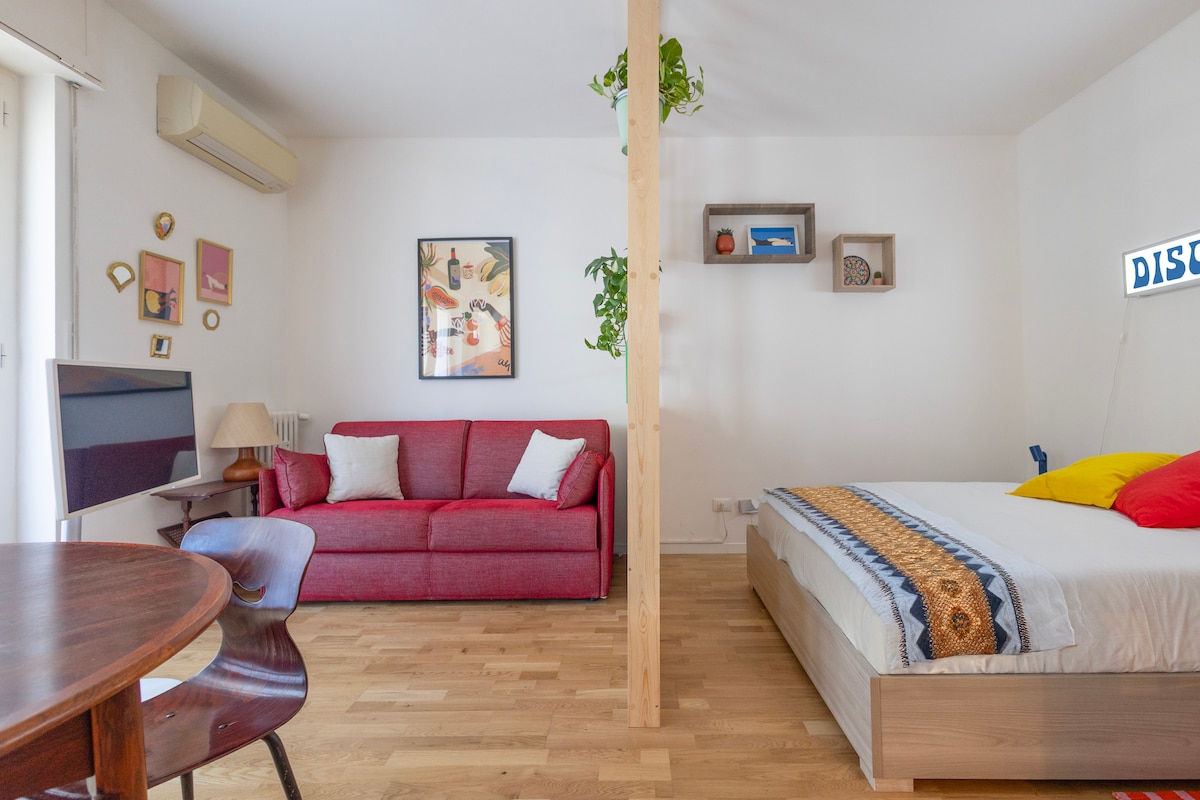 Questo moderno bilocale offre una combinazione perfetta di comfort e stile, perfetto per chi desidera vivere la città da vero milanese. • Luminoso soggiorno con divano letto, grande TV e zona pranzo/cucina completamente attrezzati • Camera da letto: spaziosa e con letto matrimoniale • Bagno: elegante e funzionale, con doccia, asciugamani e set di cortesia. • Wi-Fi gratuito e aria condizionata *Troverete un depliant con i consigli per vivere la città al meglio e una comoda mappa della metro