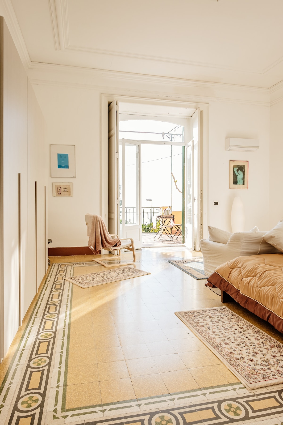 The apartment, just a 3-min walk from Amedeo Square (Metro L2, Funicular, Taxi Station), can host up to 5 guests and provides all the comforts for a relaxing stay in the heart of the elegant Chiaia district. The main spaces are: two cozy bedrooms with ensuite bathrooms, a spacious sitting room with a sofa bed, and a bright dining area with a handcrafted kitchenette. The interiors feature Liberty-style wood doors and frames from 1909, harmoniously balancing rustic elegance with modern amenities.