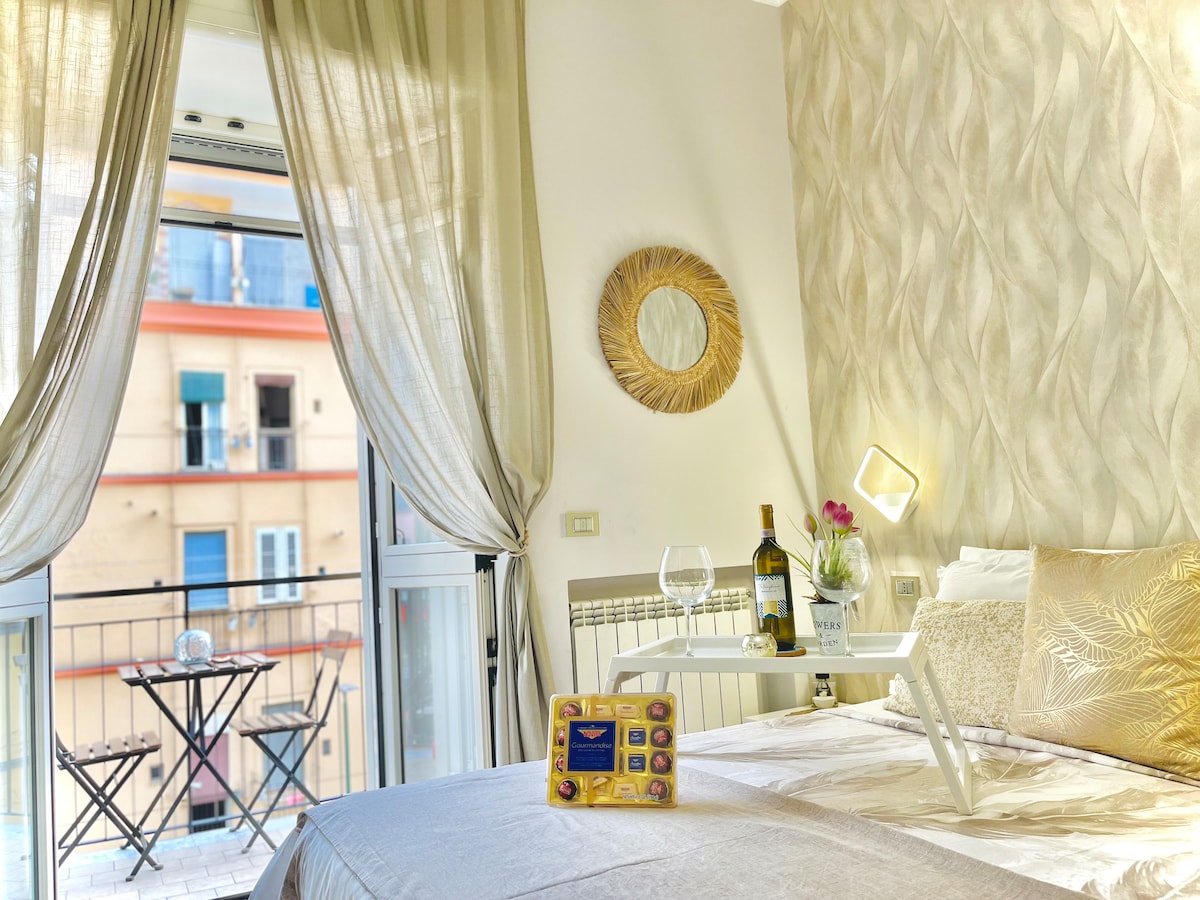 Luxury apartment: a combination of classic elegance and modernity, just renovated with JACUZZI and PRIVATE ROOFTOP of 90mq where you can admire the volcano Vesuvius. Located in a historical building on the 3rd floor without elevator in the heart of the old town, you can reach everything by walking. WiFi, PrimeVideo, Nespresso and luggage storage for FREE Points of interest • 2 min Duomo • 4 min Underground Naples • 6 min Metro L1 & L2 • 5 min Train Station • 10 min Harbour