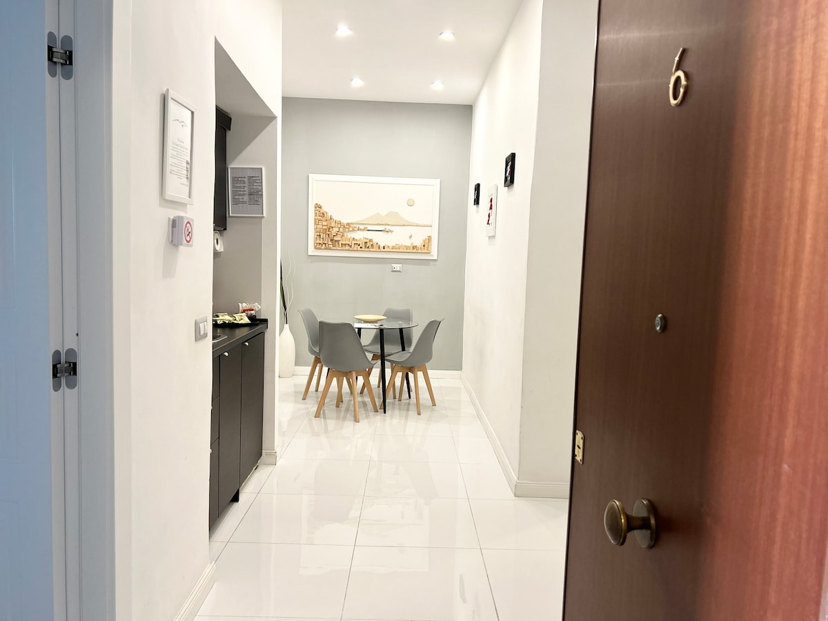 Luxury apartment: a combination of classic elegance and modernity, just renovated with JACUZZI and PRIVATE ROOFTOP of 90mq where you can admire the volcano Vesuvius. Located in a historical building on the 3rd floor without elevator in the heart of the old town, you can reach everything by walking. WiFi, PrimeVideo, Nespresso and luggage storage for FREE Points of interest • 2 min Duomo • 4 min Underground Naples • 6 min Metro L1 & L2 • 5 min Train Station • 10 min Harbour