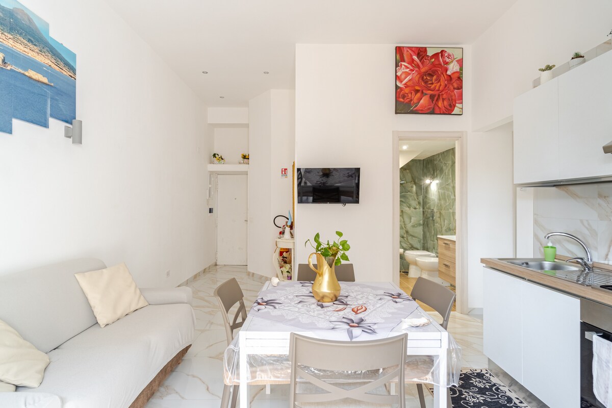 Live a unique experience in the Magnificent Suite with a balcony overlooking Vesuvius+breakfast and Welcome Wine.With this accommodation in the center ofNaples,your family will be close to everything. Mazzocchi's strategic location in the city center offers easy access to major attractions, transportation, and services.The House is comfortable and bright, with 4 beds,equipped kitchen,air conditioning/heating, washing machine. Free street parking orH24 secure parking.Transfer/tourService