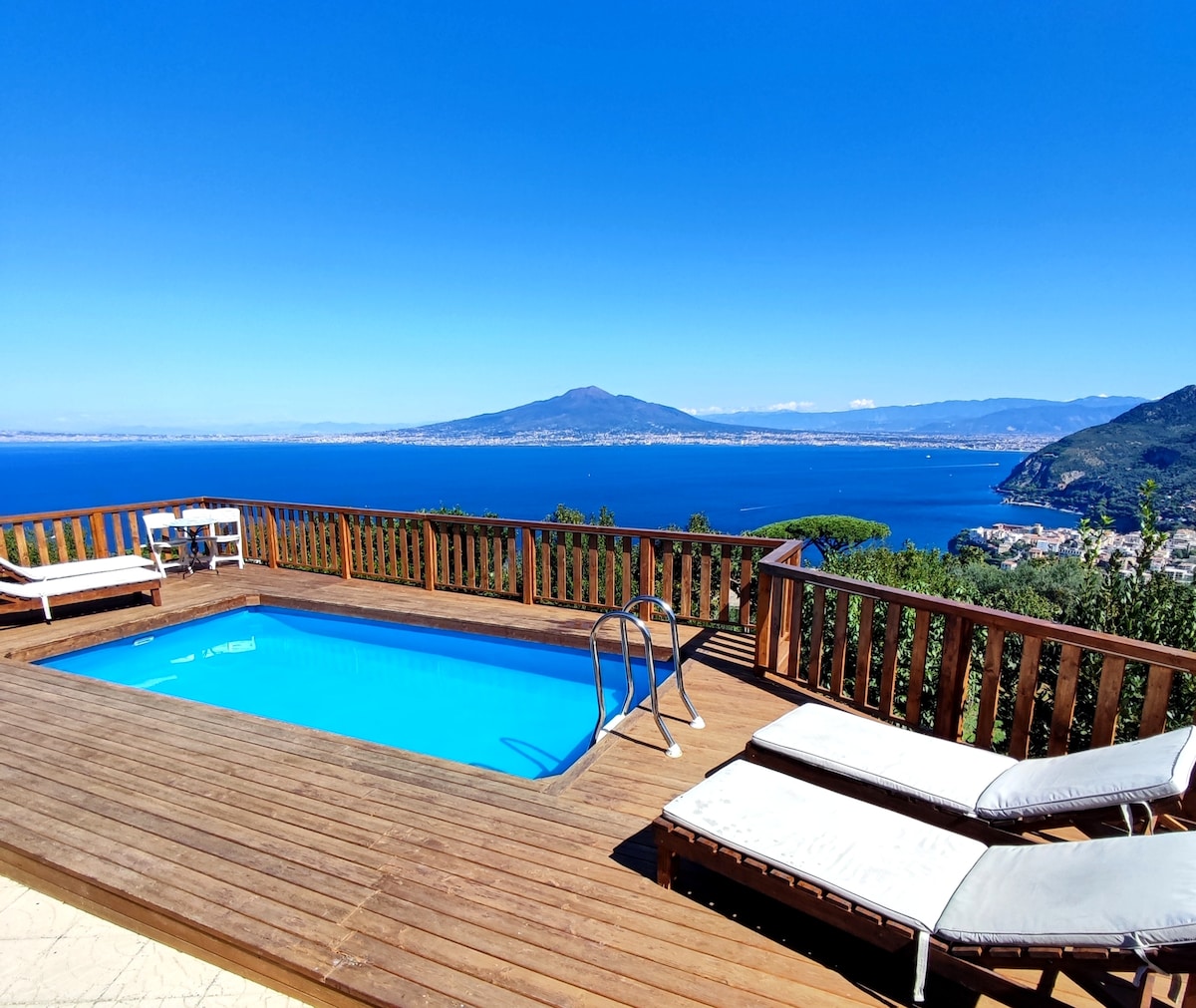 Amazing sunsets across the Gulf of Sorrento from the property's balcony overlooking the sea of historic Villa from '800. Charming, elegant and well-equipped holiday home in exclusive property. A double bedroom, a living room with a very comfortable double sofabed, two bathrooms, kitchenette. It features by stone walls, high ceilings, antique furniture, alongside contemporary features such as infrared sauna, chromotherapy shower, fast wifi. Private patio. Free car parking. CUSR 15063080EXT1055