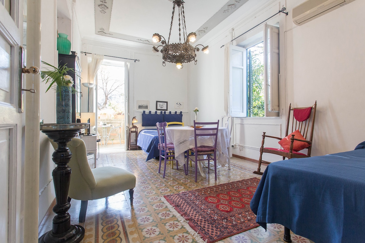 The apartment is located in the Albergheria district, near the Ballarò market, where you can enjoy typical cuisine and street food. You will be in a central location, about 500 meters from the Cathedral and the Central Station. The area is equipped with all services, shops and means of transport. The apartment is equipped with appliances, linens, television, Wifi and all comforts. For stays longer than 7 nights we offer the change of all necessary linens.