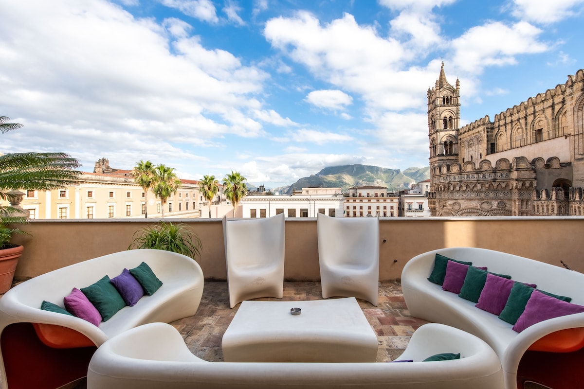 Un attico lussuoso pensato per chi desidera vivere Palermo da una prospettiva privilegiata. L’appartamento possiede una straordinaria terrazza privata che si affaccia sulle absidi della cattedrale, regalando una vista unica e suggestiva. Una seconda terrazza, altrettanto affascinante, si affaccia sui tetti della città, offrendo una vista sui vicoli storici. Gli ambienti interni sono arredati con opere d’arte e pezzi vintage di design italiani,che donano personalità e stile ad ogni angolo.