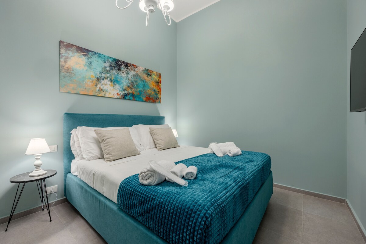 king deluxe room with balcony, private bathroom. Free parking on the street or private paid parking. The room is equipped with a LED TV, desk with chair, clothes hangers, minimal backlit recessed bedside tables, a USB socket, a personal HOTSPOT WI-FI in the room, air conditioning, radiator heating, wooden thermal break windows, bed with orthopedic base and Memory Foam mattress with Memory pillow.