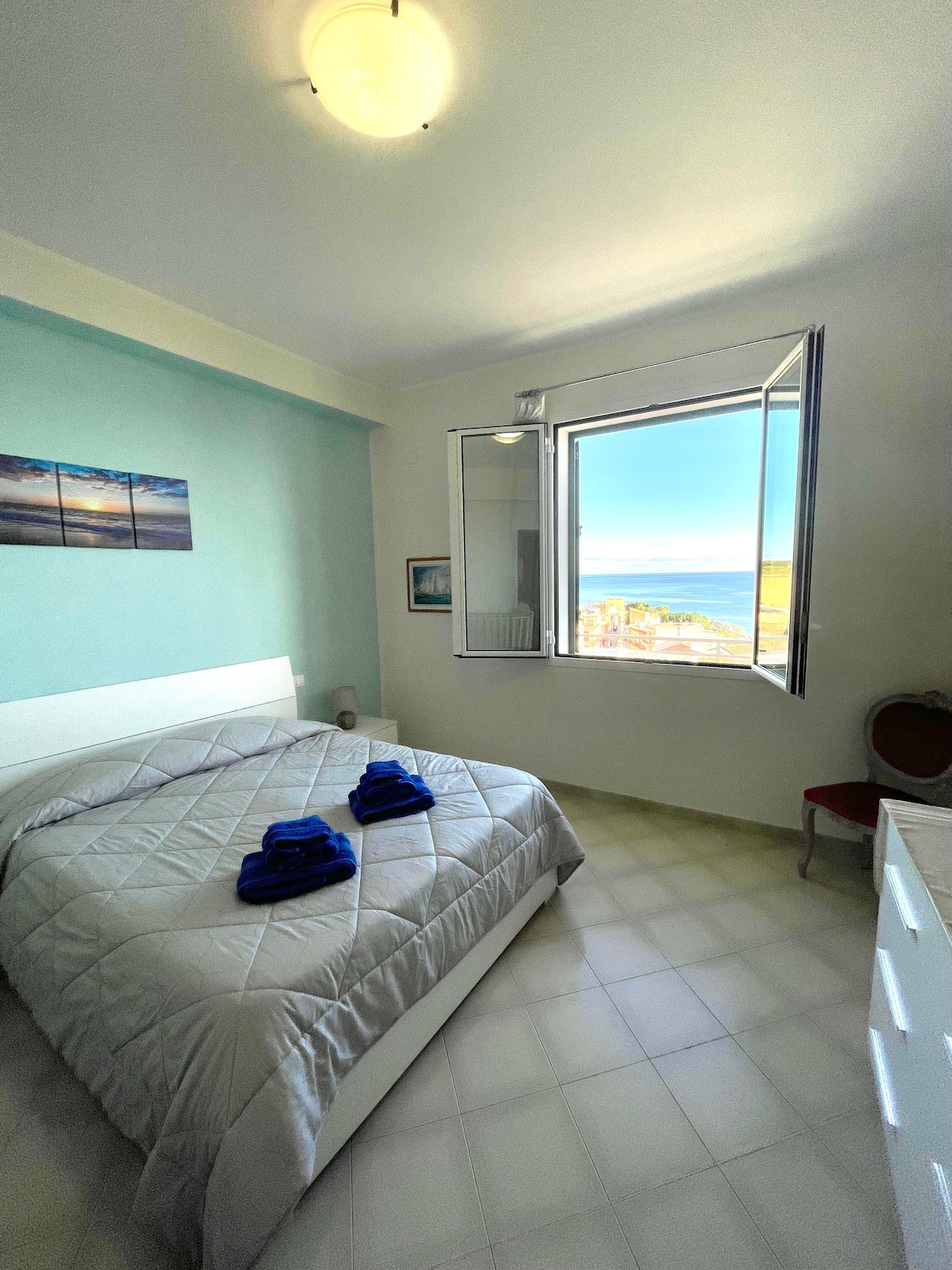 4 camere da letto con aria condizionata, 2 bagni, 1 cucina vivibile e un ampio salone vista mare. La villa, caratterizzata da ampie terrazze che si affacciano sul mare, è bifamiliare e divisa su due piani, completamente indipendenti l'uno dall'altro, al di là del giardino con l'accesso al mare e del piazzale d'ingresso. L'alloggio qui descritto e le foto che vedete sono del piano superiore. Il piano inferiore della villa, è di proprietà di mio zio e viene affittato solo in estate separatamente.