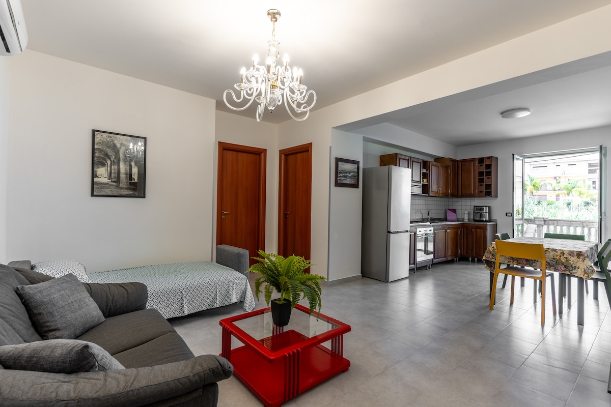 Enjoy your stay in Gioiosa Ionica from our comfortable apartment, located just a 5-minute drive from the beautiful Ionian beaches. The apartment is part of a secure and well-maintained luxury complex. Each room opens onto a private balcony with views of the swimming pool, mountains, and sea. A dedicated on-site custodian is available to check you in and to guarantee a smooth and pleasant experience throughout your stay.