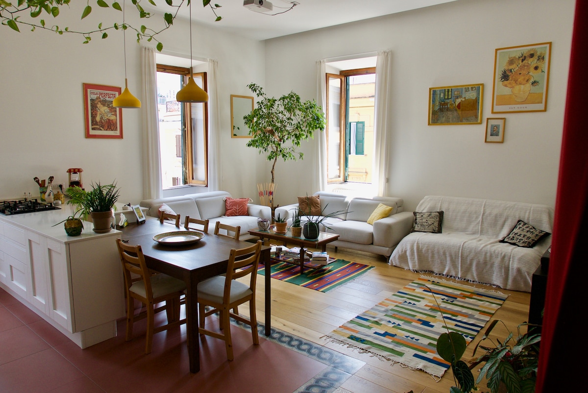 Welcome to "CineCasa La Marmora", a unique and enchanting Airbnb where the charm of Rome meets the glamour of cinema! The houses a special design, inspired by cinematography. The main bedroom features a video projector in place of a traditional TV, creating a unique ambience to enjoy your favorite TV films about Rome, making your holidays truly unique! Enjoy all the comforts of the recent renovation: high speed WiFi, A/C, Netflix, Prime Video, 2WC, 2 bedrooms. Great spot near Termini Station!
