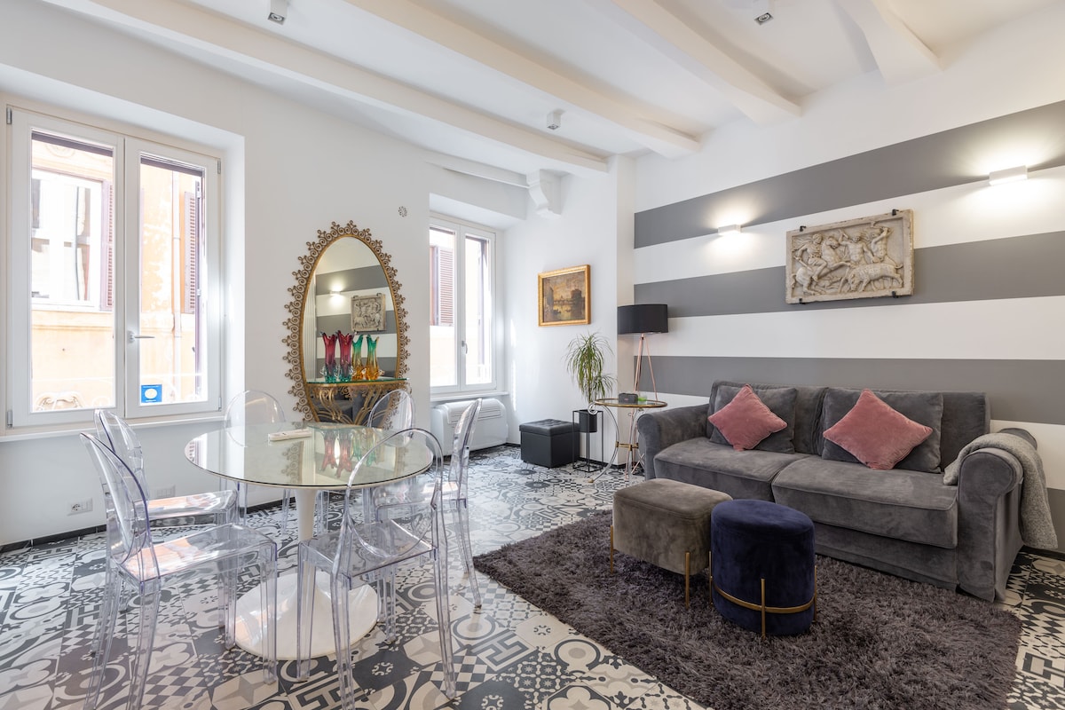 Experience the warmth and authenticity of Rome in this elegant, modern apartment, nestled in one of the city's most welcoming and character-filled neighborhoods. A short stroll from both Piazza Navona and the Vatican, it offers a perfect mix of comfort, style, and location. Surrounded by local cafés, wine bars, and traditional restaurants, yet tucked away on a peaceful street, it’s the ideal retreat for those seeking a human-scale, safe, and genuine Roman experience.
