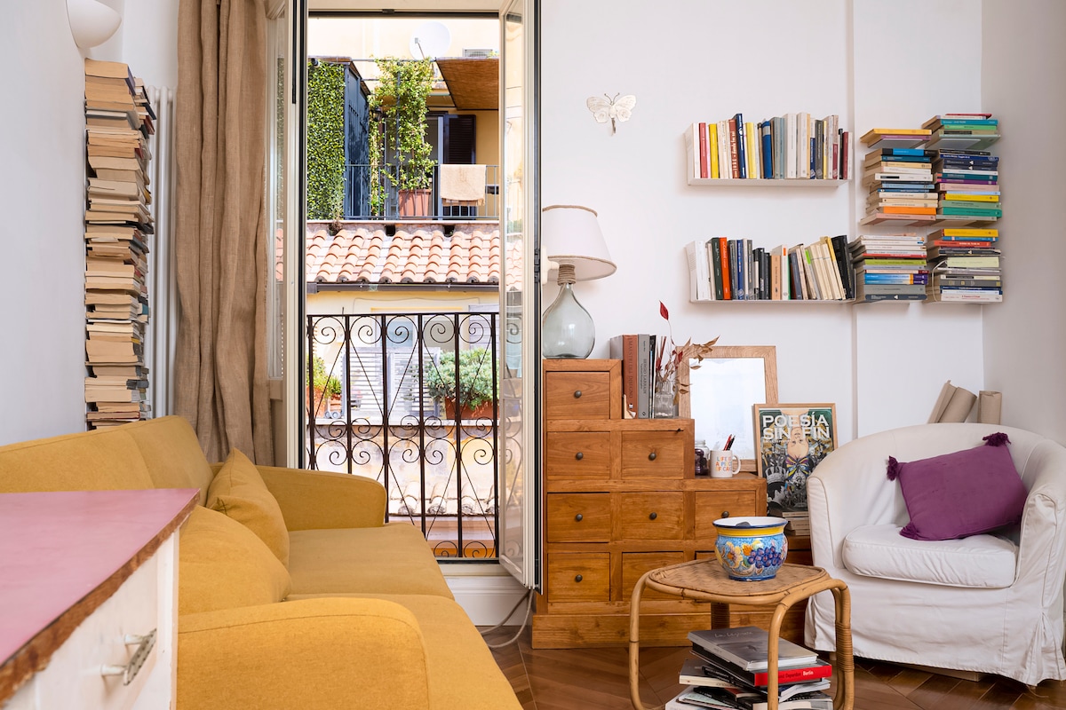 Light the large stone fire and relax with a book in this elegant home overlooking Via dei Banchi Nuovi. Coffered ceilings cap cozy rooms in relaxing, neutral tones accented by designer furnishings and owner's original paintings. This charming fully renovated house is located in one of the most beautiful, ancient and vibrant area of the center of the Eternal City. We also like to offer eco-sustainable hospitality: we use electricity from renewable sources, organic products.