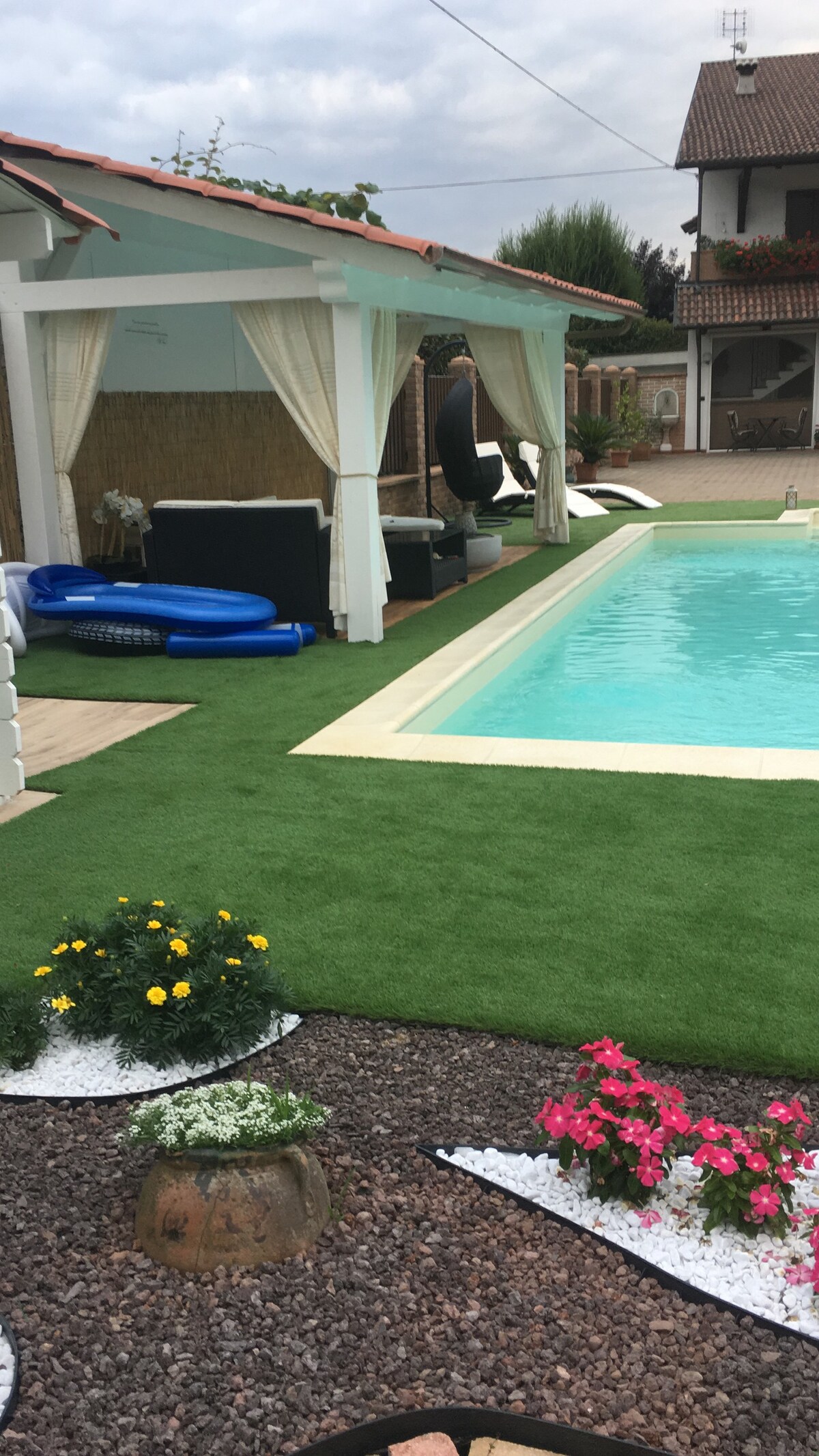 La casa si trova in un piccolo paesino ai piedi delle montagne. Siamo a 50 km da Ceresole Reale, nel cuore del parco Nazionale del Gran Paradiso. L' appartamento si trova a pian terreno di una palazzina a due piani dove, al piano superiore abitiamo io e mio marito. Gli ingressi sono separati. La piscina è privata, noi solitamente la usufruiamo la sera, a volte, dalle 18 alle 19, condividendo un aperitivo con gli ospiti. Per il resto è tutta vostra! Solitamente nei weekend non siamo in casa.