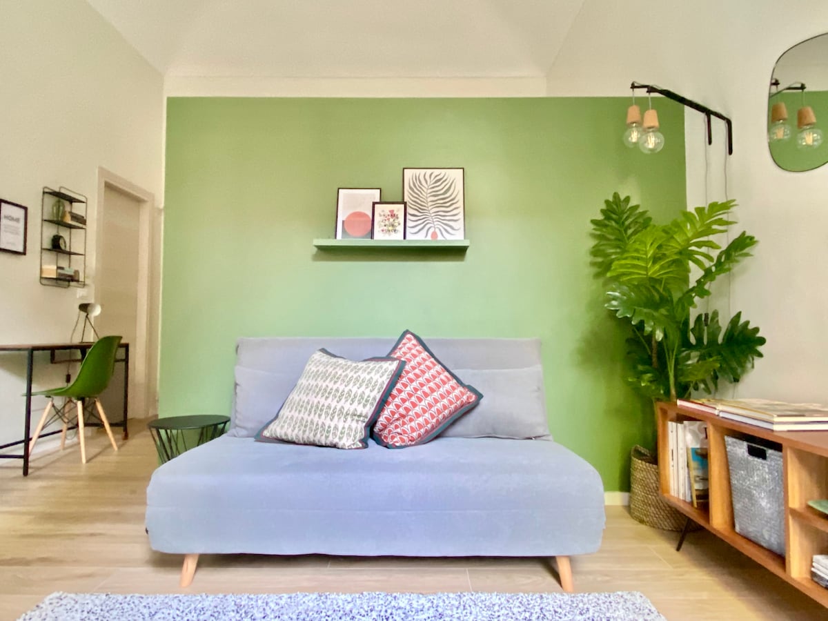 Lasciati stupire da questo originale ed accogliente loft di 45mq, ristrutturato e arredato con cura nei dettagli. L’uso del colore verde in tutte le sue sfumature, i particolari d’epoca abbinati all’originalità degli arredi, la funzionalità delle sue numerose dotazioni renderanno il tuo soggiorno indimenticabile. E prima di entrare potrai guardare la Mole Antonelliana col naso all’insù.