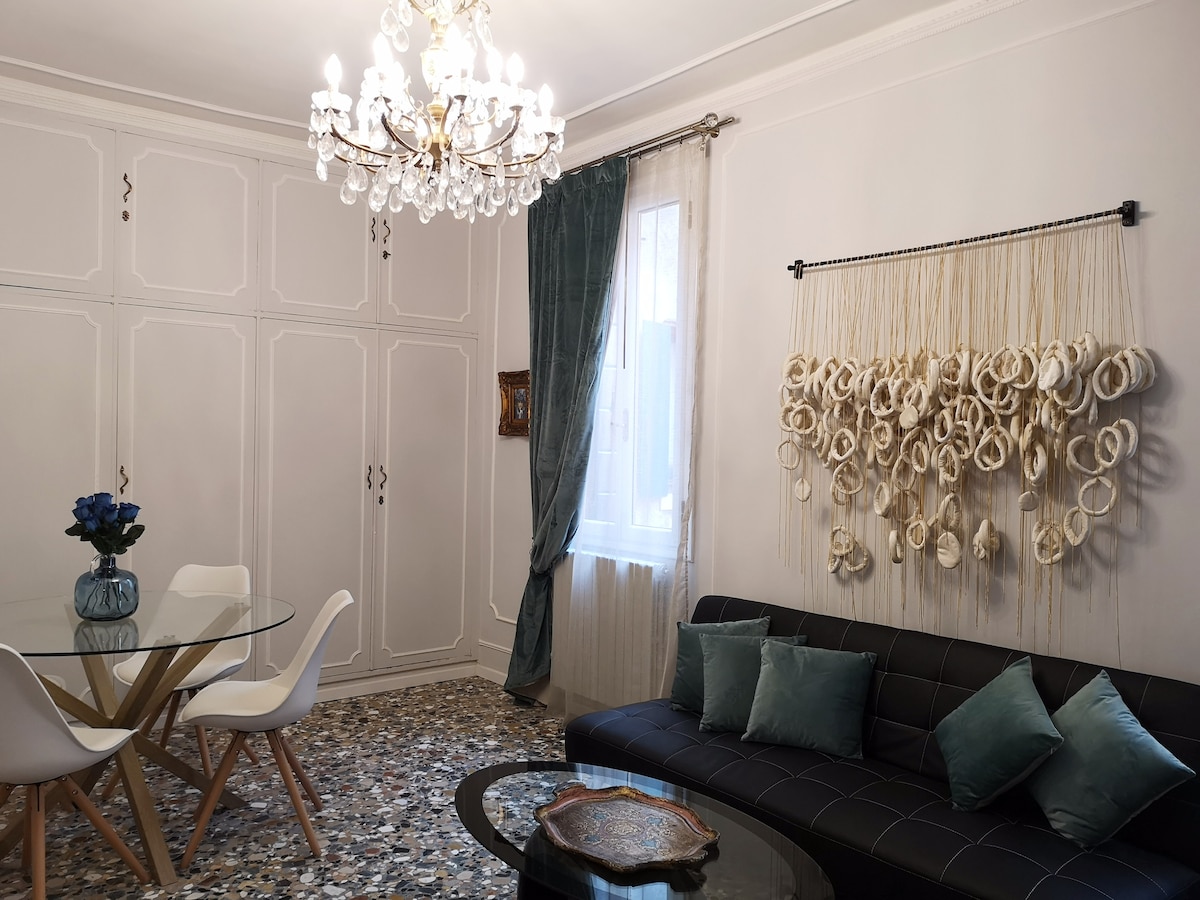 This flat is in Castello, the unique real, green and characteristic "Sestriere" of Venice; we finished to restore it on 2017, respecting in the furniture both the Venitian tradition both the design of 70/80 (Cassina, Flos, Foscarini, Castiglioni and Carlo Scarpa). The apartment is situated at the second floor of a venetian palace, in Campo Ruga, near to the exit of the Biennale and San Pietro di Castello, 12 minutes walking from San Mark's Square.