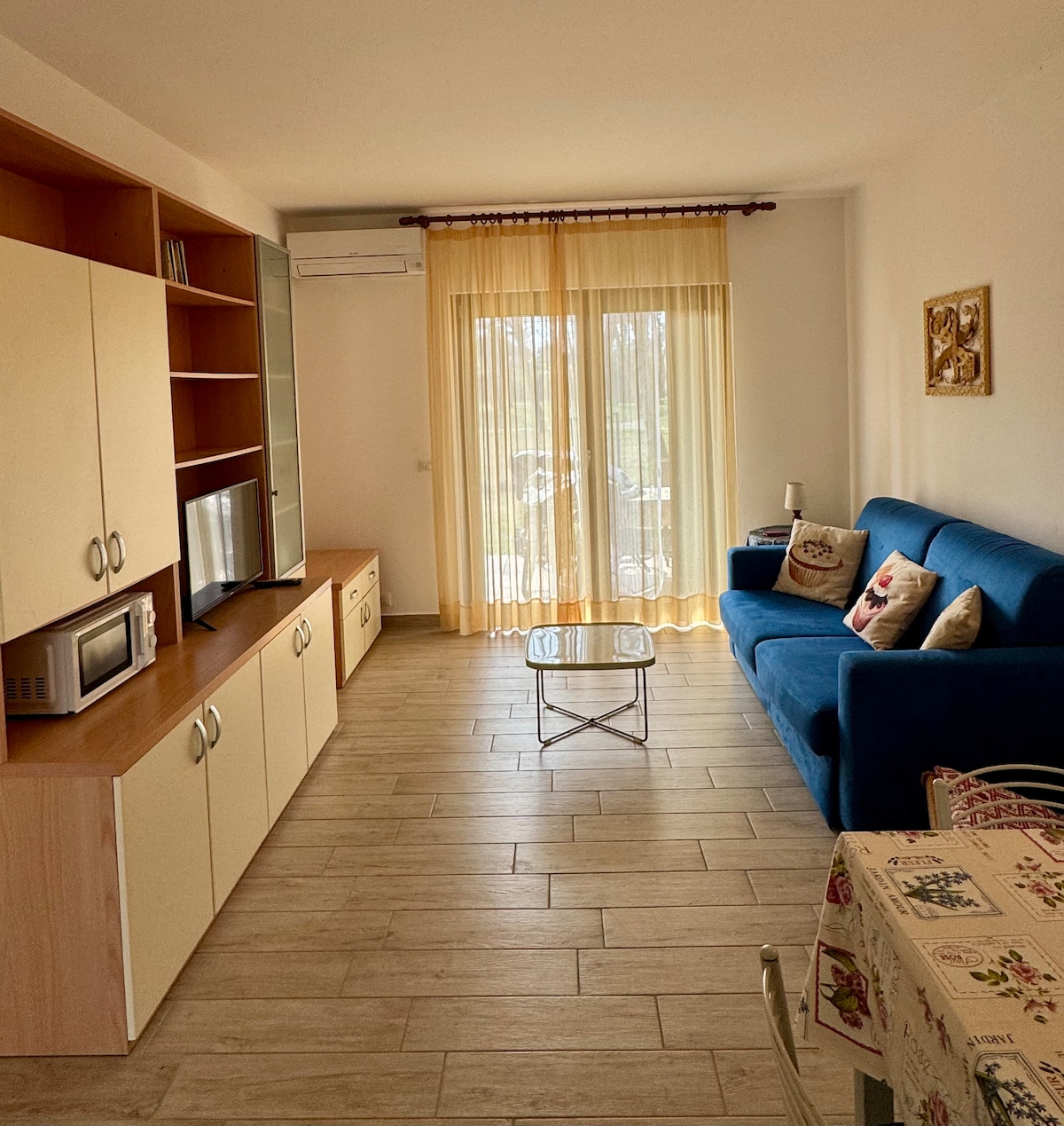 Questo ampio spazio, unico nel suo genere, è pronto ad accogliere tutto il gruppo. De Bains Apartament è situato a 5 minuti dai principali servizi, via di comunicazione (es. Ferry-Boat, Market) e dista 400 m dalla spiaggia. La struttura è composta da ampio salone con tv, cucina separata, tre camere da letto, due bagni e ampia terrazza dove è possibile cenare e pranzare. L'appartamento dispone di: climatizzatore, WIFI,lavastoviglie,lavatrice e microonde