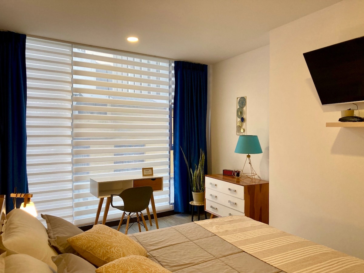 Discover the essence of Quito by staying in our cozy apartment in La Mariscal, a vibrant and traditional neighborhood known as a meeting point for visitors from all over the world. Our apartment is ideal for those seeking entertainment, relaxation, cultural experiences, enjoying national and international cuisine, and taking home unique souvenirs with representative Ecuadorian handicrafts.