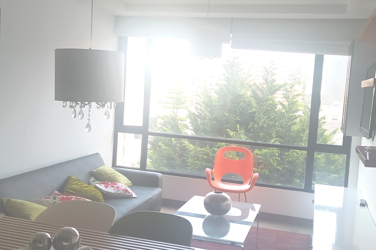 Quito, Ecuador Your booking will be in a quiet and safe environment We are a few steps from Parque de la Carolina, which is very famous in Quito for being close to the financial, commercial and tourist area. It is close to banks, shopping centers, pharmacies, supermarkets and with all services included such as: Wifi Netflix pool sauna, Turkish, Hydromassage gym, business center, lounge bar: pool table, Play area: play station Children's area Terrace with 360 view