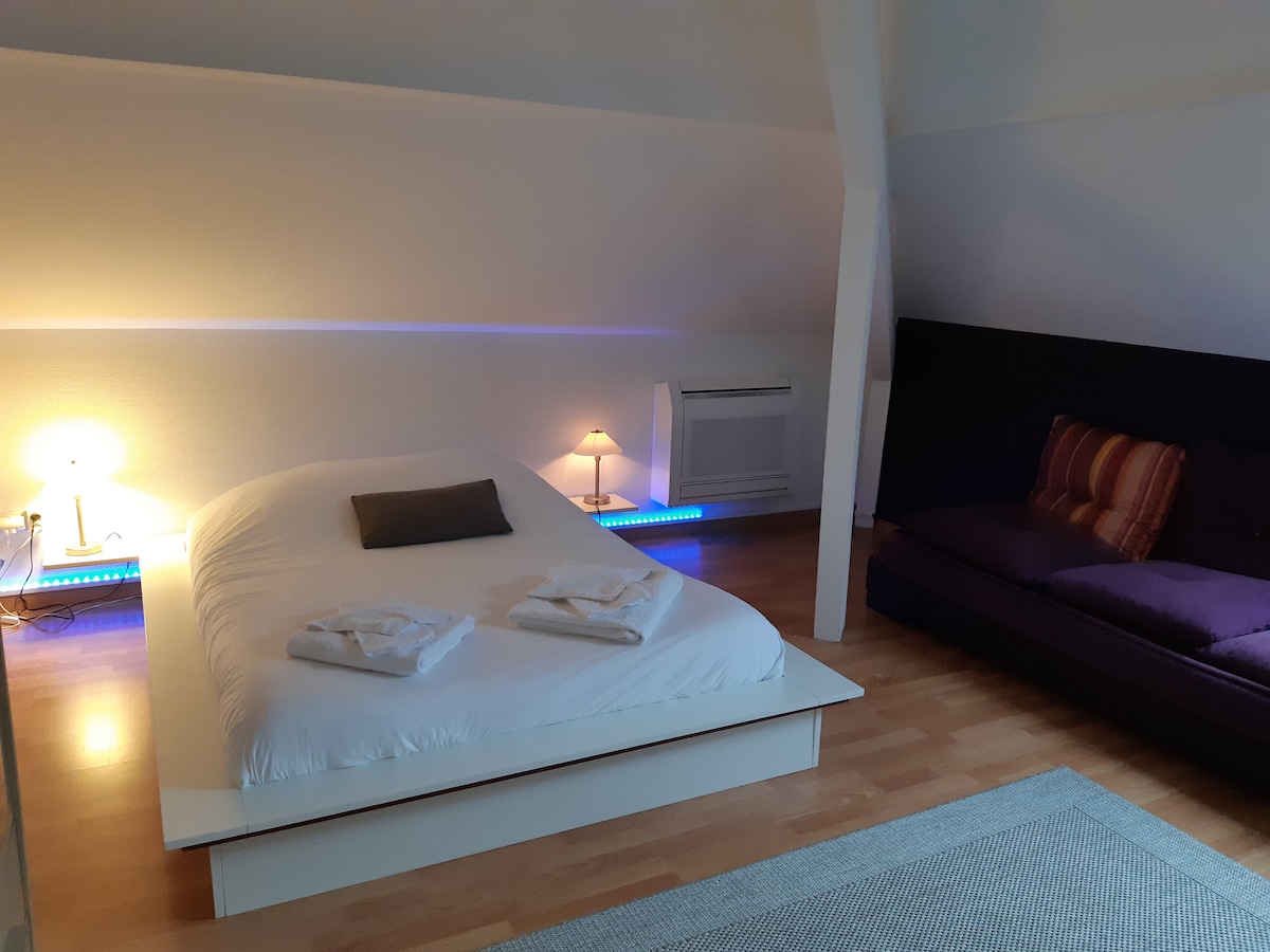 Située dans un village calme entre Metz et Nancy, à 7 minutes des entrées/sorties autoroute A31, à 4 minutes gare Lorraine TGV et à 10 minutes de l'aéroport. Entrée privée par le rdc, accès à la chambre qui se trouve à l'étage par un large escalier en bois, elle possède un lit de 160x200, possible d'ajouter un lit bébé sans supplément.Accès à une salle d'eau privée avec douche et WC indépendant.Capacité maximale 2 personnes +1 bébé.Restauration sur place possible sur réservation avec supplément