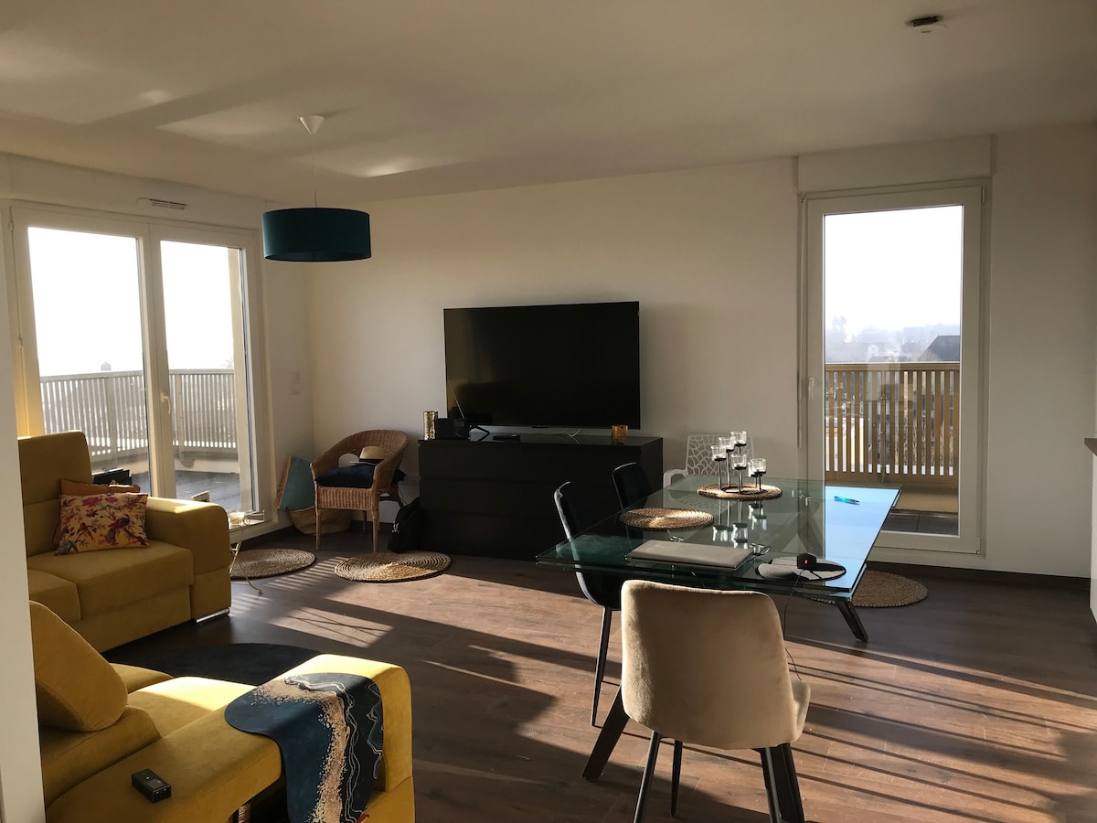 Appartement d'une surface de 80 m2 situé dans une petite copropriété de 9 appartements. - 1 chambre avec literie de qualité pour deux personnes. - 1 salle d'eau avec douche et miroir connecté Bluetooth. - 1 Cuisine équipée. - 1 emplacement de parking privé. - 1 terrasse avec vue sur parc joliment arboré - La consommation de tabac est préférable sur la terrasse. - Vous ne pouvez pas dépasser le nombre de personnes indiqué au moment de la réservation. Connexion Internet à la Fibre haut débit.
