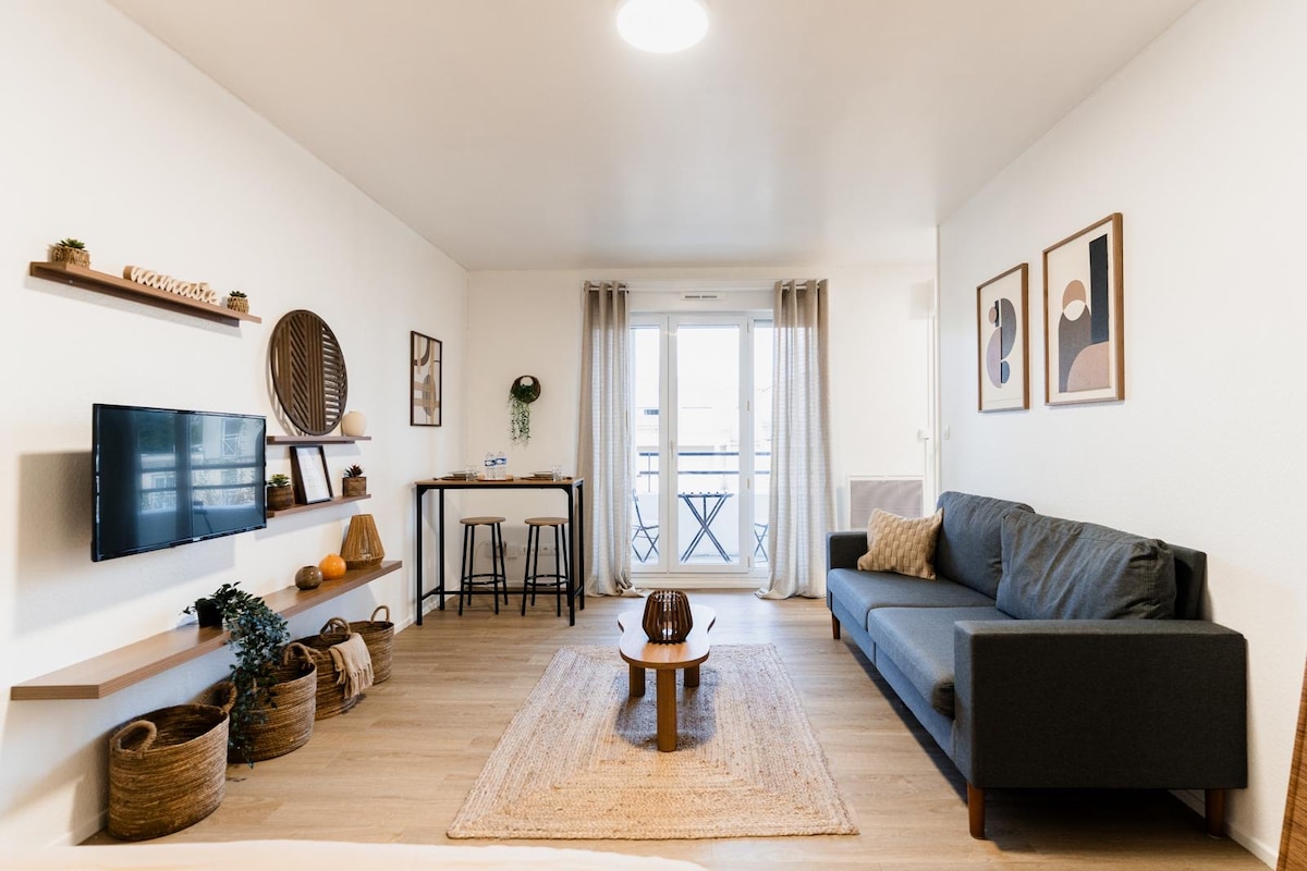 Bright and cosy, this 3-room apartment is located in the historic district of Metz Vallières, offering a lovely view of the neighbourhood and Saint-Lucie Church. Non-smoking flat with WiFi, a fully equipped kitchen, a comfortable living area with TV, a bathroom and a washing machine. Perfectly located: close to motorways A4/A31 and Robert Schuman Hospital, just 7 minutes from the train station and city centre, and 9 minutes from the exhibition park. Free parking is available 150 m from the pr
