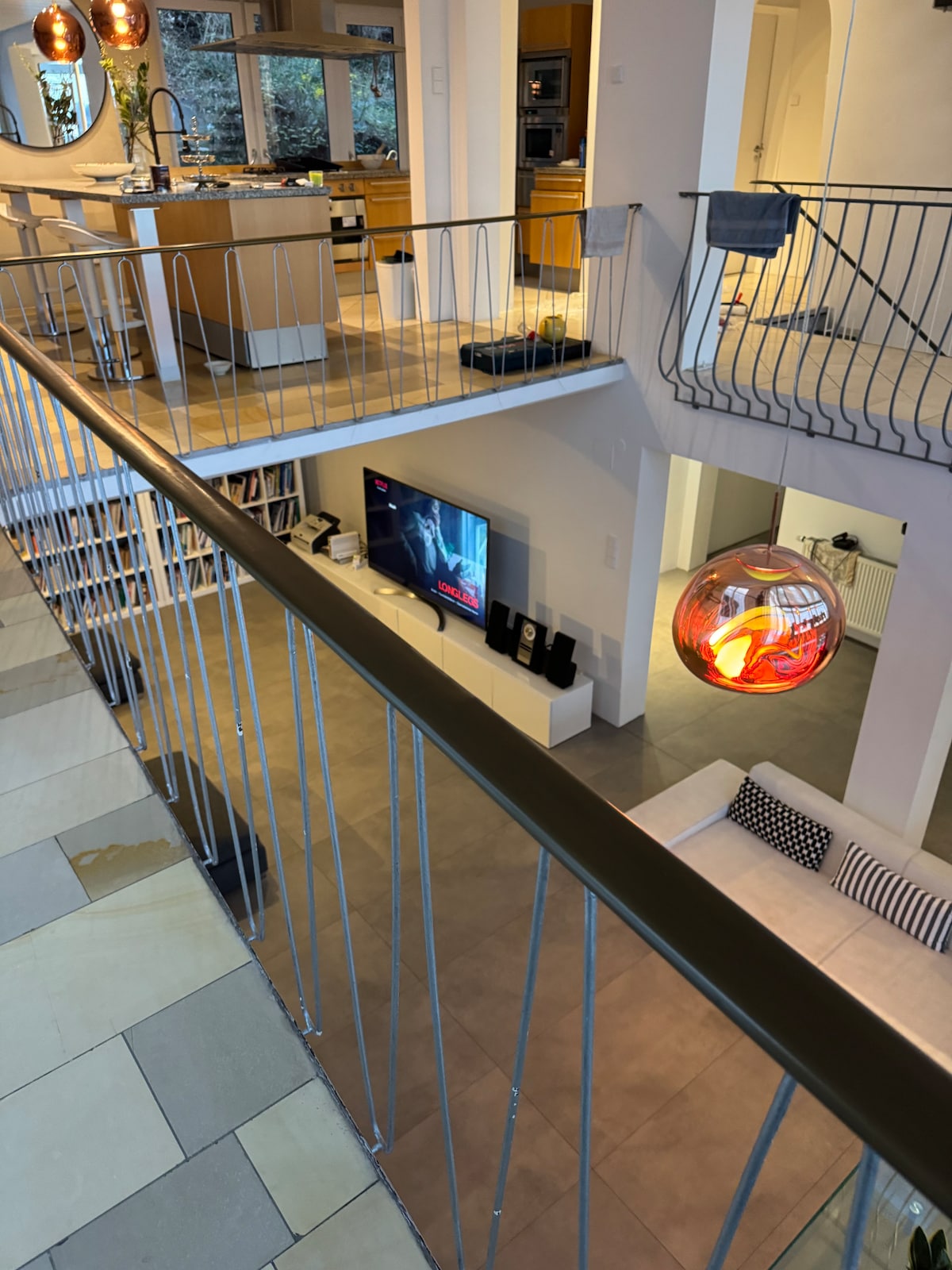 Modern villa in Stuttgart perfect for groups, meetings spacious, well maintained. Offers 300 m² living space, 900 m², 3 double rooms with private bathrooms, 2 offices/rooms, 2 living rooms, 1 WC, large conference room with dream view 12 chairs - small sauna - Garage Open fireplace living room, gallery over 2 floors Stuttgart-Vaihingen offers an excellent infrastructure. Stuttgart University 10 minutes -15 minutes to the city center by bus, train - Shopping, forest recreation nearby.