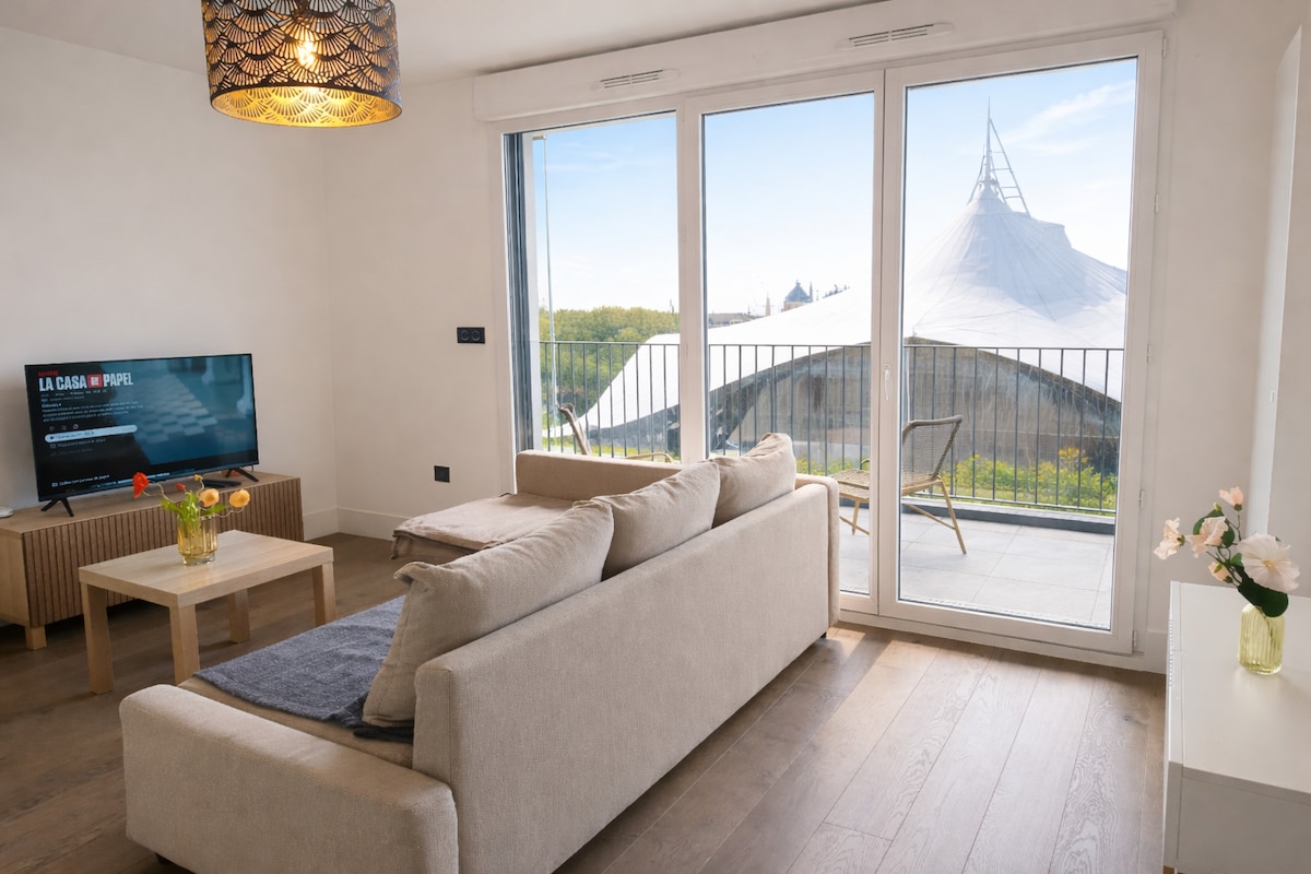Appartement contemporain de charme, en plein cœur du quartier de l’amphithéâtre avec vue imprenable sur le Centre Pompidou. Situé à deux pas de la gare et du centre commercial Muse, cet appartement vous offrira toutes les commodités (Restaurants, Parcs, Supermarché, Pharmacie, Cinéma Bowling) pour profiter pleinement de votre séjour à Metz à pied. Vous vous trouverez également à 15 minutes à pied des principaux monuments touristiques de Metz.
