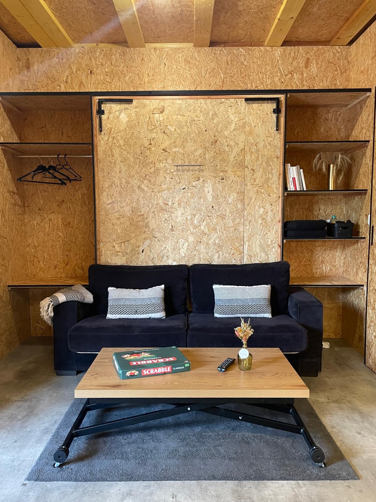 Studio Ossature Bois isolation RT 2012 de 18m2 à Dombasle sur Meurthe (20 min de Nancy - à 5 min de l'entrée d'autoroute A33 - et à proximité de la voie verte longeant le canal) Équipé d'un lit 2 places, d'une kitchenette et salle de bain (douche, meuble vasque et WC). Idéal couple ou personne seule. Facilité de stationnement dans la rue sur les places matérialisées. Entrée et accès indépendant au chalet. Boite à clés pour plus d'indépendance et liberté.