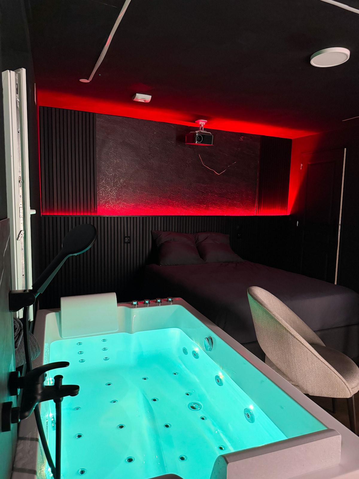 💫 Profitez d’un espace bien-être privé comprenant un jacuzzi SPA, une balnéo, un sauna et une double douche à l’italienne. Plongez dans une atmosphère feutrée grâce aux lumières LED modulables, installez-vous face à l’écran du vidéoprojecteur cinéma et savourez un film depuis le lit king-size. 🎱 Pour prolonger l’expérience, un billard et une table de ping-pong vous attendent pour un moment ludique à deux.
