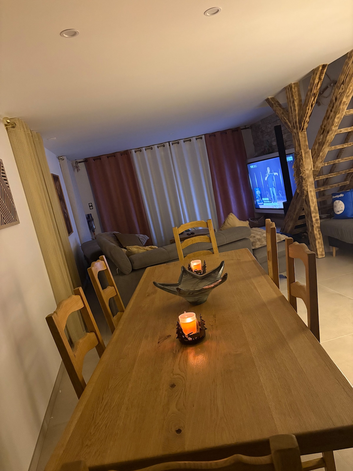 Vous séjournerez dans un havre de paix à la lisière de la forêt, dans cette ancienne ferme moulin au cœur de la nature. Le petit nid de 50 m2 a été aménagé avec soin et amour dans une ancienne dépendance, et décoré dans un style campagne chic. Cuisine équipée et salon télé au rez de chaussée, chambre cosy lit queen size et salle d'eau à l' étage. Stationnement sécurisé et aisé dans la cour de la ferme. Possibilité de brancher 1 véhicule électrique ( 2.2 kw )