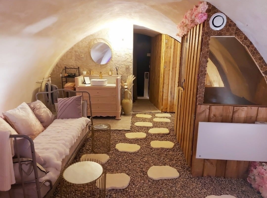 Un véritable petit paradis où relaxation et sérénité sont au rendez-vous. Ici, tout est pensé pour vous offrir une expérience unique et hors du temps. 🛁 Baignoire balnéothérapie en cave voûtée : Plongez dans une atmosphère envoûtante et profitez d’un moment de bien-être absolu. 🛏️ Chambre cosy 🚬 Espace fumeur dédié : Profitez d’un coin spécialement aménagé pour votre confort. ⚠️ À noter : Ce logement atypique ne possède pas de fenêtres, ce qui renforce son ambiance feutrée et intimiste.