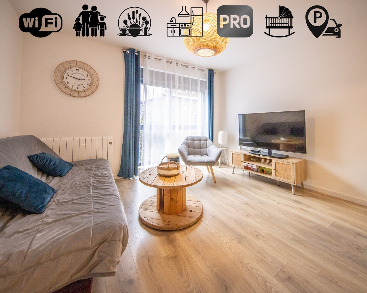 Welcome to L’Émeraude! Discover our unique and cozy studio, rated 3 stars ⭑ ⭑ ⭑, offering you a comfortable Metz experience :) You’ll find a fully equipped kitchen, a cozy sleeping area, a laundry space, and even free outdoor private parking. Located in a quiet neighborhood, (⚠️ 3,8 km from the city center and 1,8 km from the train station, Pompidou Museum, and commercial and industrial areas,) it’s the perfect place for relaxation and/or work!