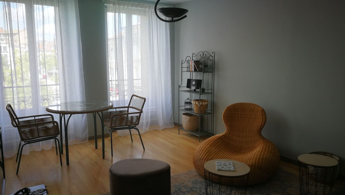 Appartement 40 m2, hyper centre, très confortable , situé au 2ème étage d'une résidence, cuisine équipée, salon avec vue sur le quai de Meuse .Chambre lit queen size, Salle de bain avec sèche serviettes, WC. Linge de maison fourni.Bien équipé (four, micro-ondes, lave-vaisselle,cafetière à dosettes,.) Petit déjeuner prévu. Ne pas fumer dans l'appartement.Accès refusé aux animaux par règlement de copropriété. Parkings gratuits à proximité. Gare routière 5 minutes en voiture ;Gare TGV 18 minutes.