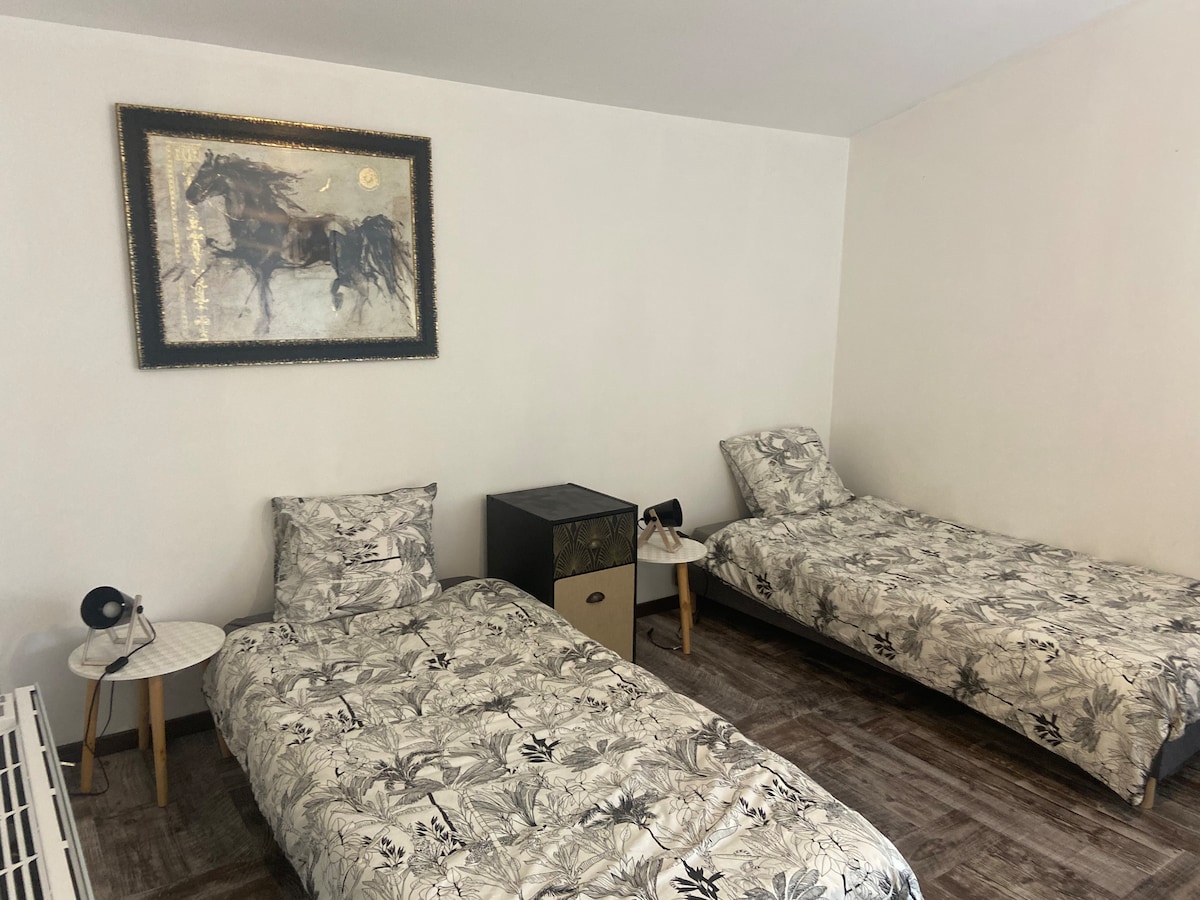 Appartement de 60m2 situé à 5 min à pied de commerces (supermarchés, pharmacie, boulangerie) et du centre ville. Places de parkings gratuites à l'arrière de la résidence. Il se compose d'un salon donnant sur un balcon extérieur, une cuisine neuve tout équipée, une salle de bain rénovée et une chambre avec lit 2 places et une autre pièce aménagée en bureau. Il y a également une buanderie avec lave linge . Wifi disponible. Au plaisir de vous recevoir très prochainement.