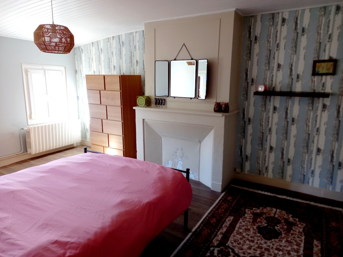 À 10 minutes en voiture du centre commercial de Saint-Dizier, 20 minutes du lac du der, venez vous reposer à la campagne dans un appartement tout confort situé dans notre charmante demeure de 1900. L'appartement sur 2 étages, dispose d'un salon, cuisine équipée, salle de bain, 1 chambres et 2 toilettes séparés. Places de parking gratuites juste en face. Nous occupons un appartement de la maison avec un enfant en bas âge , il est donc INTERDIT de faire des soirées /fêtes.