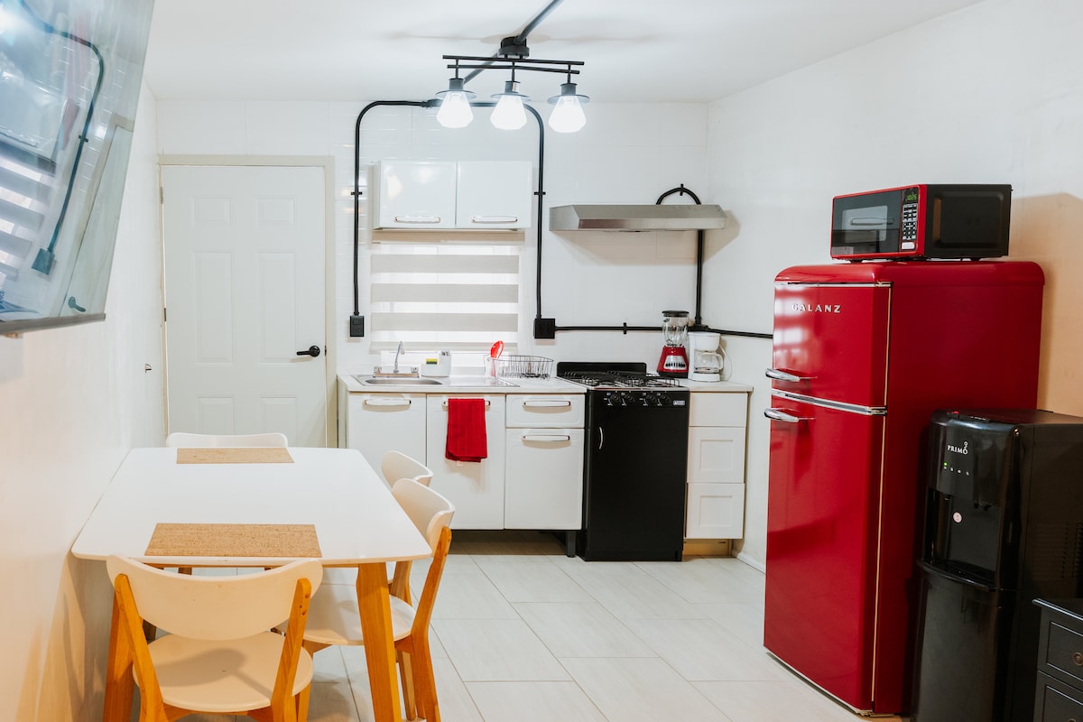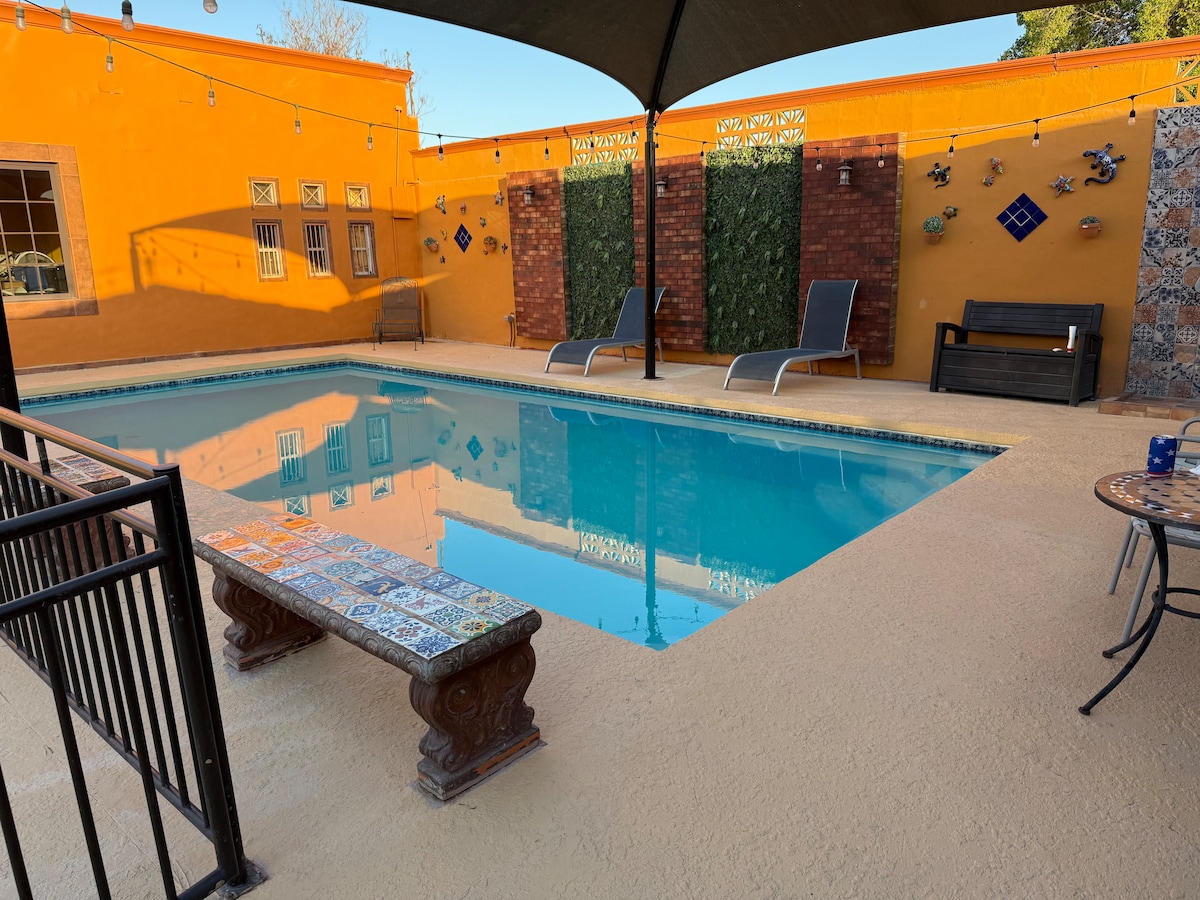 Enjoy a night or a few in just rennovated Mexicali home. Cozy 1 bedroom can fit two, added futons fitting another two making it the perfect 4 person stay. Family friendly neighborhood with community park open to you. Gated community and secure protection with digital entry code to front door and cameras for added protection for you and your family. Perfect location and easy access to a variety of restaurants and convenient stores. Outdoor area with jacuzzi, firepit, etc.