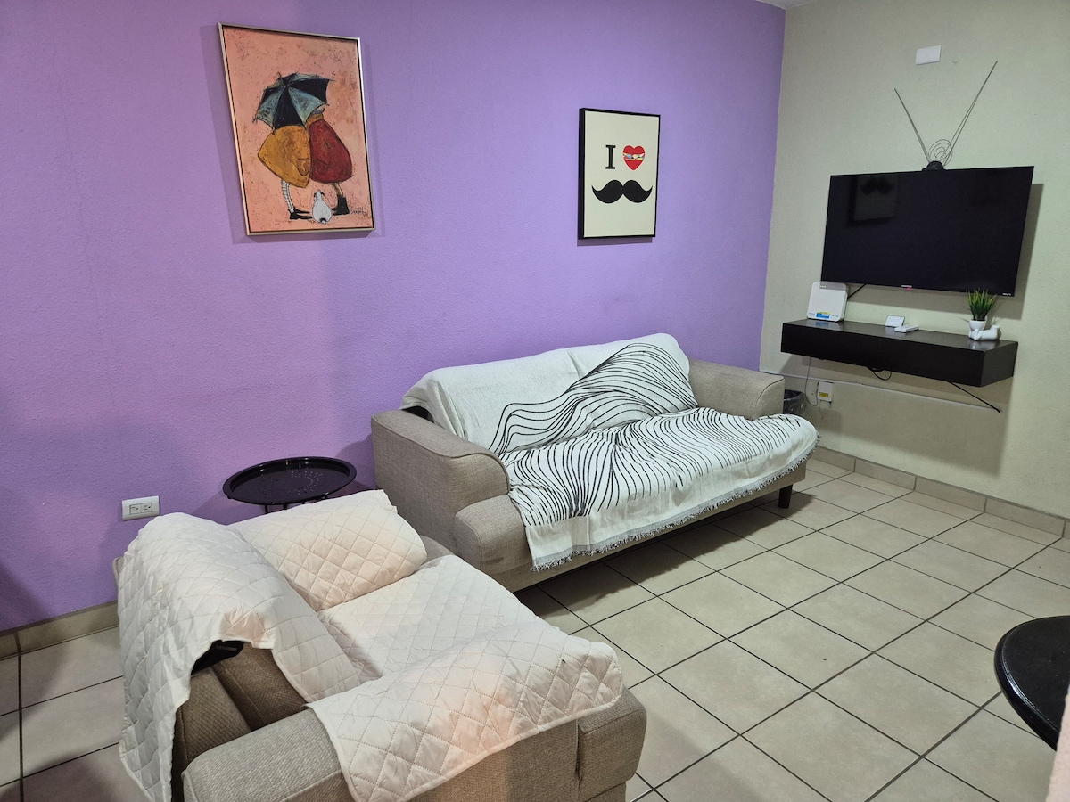 An excellent apartment located in one of the most central and sought after areas of Mexicali. We are 5 minute from the Cross border. It has controlled access, an office for your convenience, appliances and new and modern furniture, 2 bedrooms, 1 bathroom, kitchen, TV area, laundry and service room. Excellent for business and family trips!