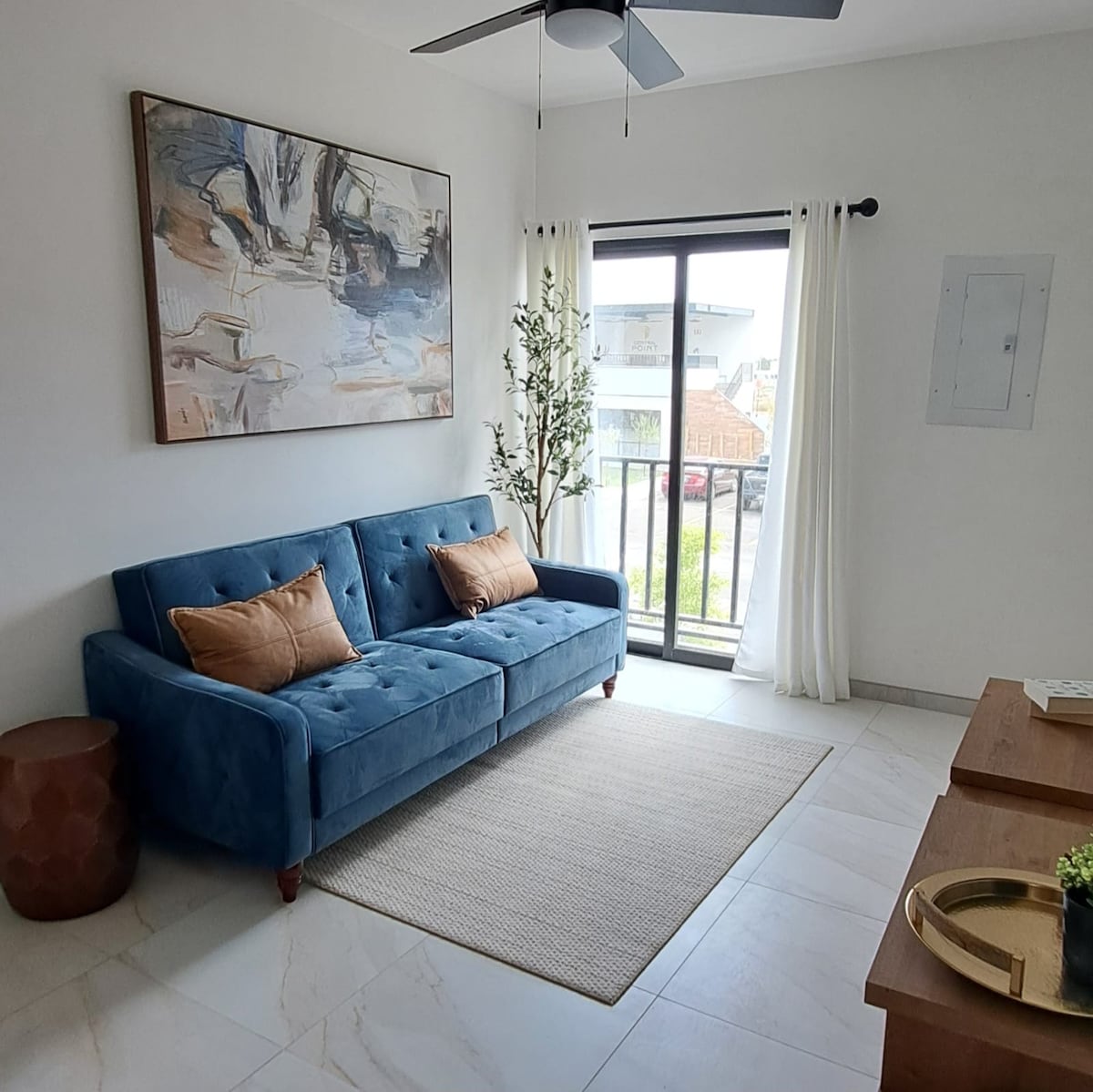 - Modern 2-bedroom apartment on the 5th floor, minutes from Plaza Cachanilla - Elevator access for easy convenience - Self check-in with smart keypad - Parking for 2 vehicles - AC throughout the apartment - Fully equipped kitchen, dining area, and laundry space - 75” 4K Smart TV with Netflix, Disney+, Amazon Prime, and HBO - Communal terrace on the 9th floor with business center, grills, and lounge area - Social Club access: swimming pool, gym, and game room - We issue MX invoices (Facturamos)