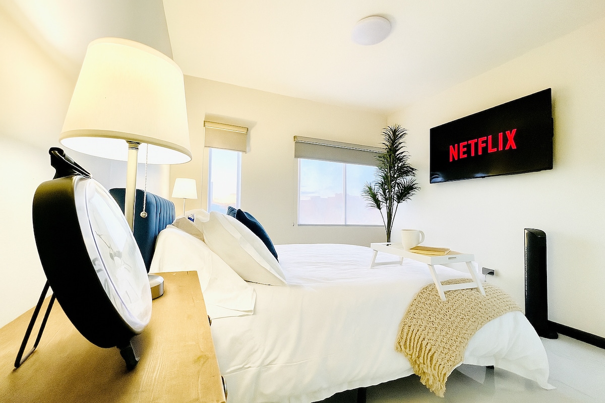 Bienvenido a tu refugio urbano en el corazón de la ciudad. Este moderno apartamento de una recámara ofrece el máximo confort y estilo, con un diseño contemporáneo y mobiliario de alta calidad. Disfruta de una cama queen-size con sábanas suaves, una sala acogedora y una cocina totalmente equipada. Las grandes ventanas inundan el espacio de luz natural y ofrecen vistas impresionantes. Con Wi-Fi y Smart TV, estarás siempre conectado. A pasos de lugares de interés, restaurantes y transporte.
