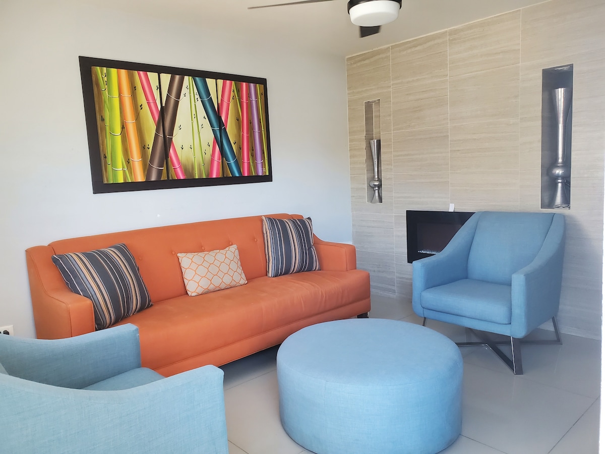 Disfruta una experiencia con estilo en Espacioso, lujoso y elegante departamento con una gran ubicación. Totalmente amueblado, decorado y equipado, 2 y 1/2 baños, 3 recámaras, ropa de cama, sala, barra, cocina equipada, lavadora-secadora, 2 Smart TVs, Internet. Estacionamiento cerrado con control remoto para 2 autos. A unos pasos de restaurantes, gimnasios, comercios, bancos, importantes lugares de diversión y 2 importantes vialidades (no recomendado para personas sensibles a música de bares).