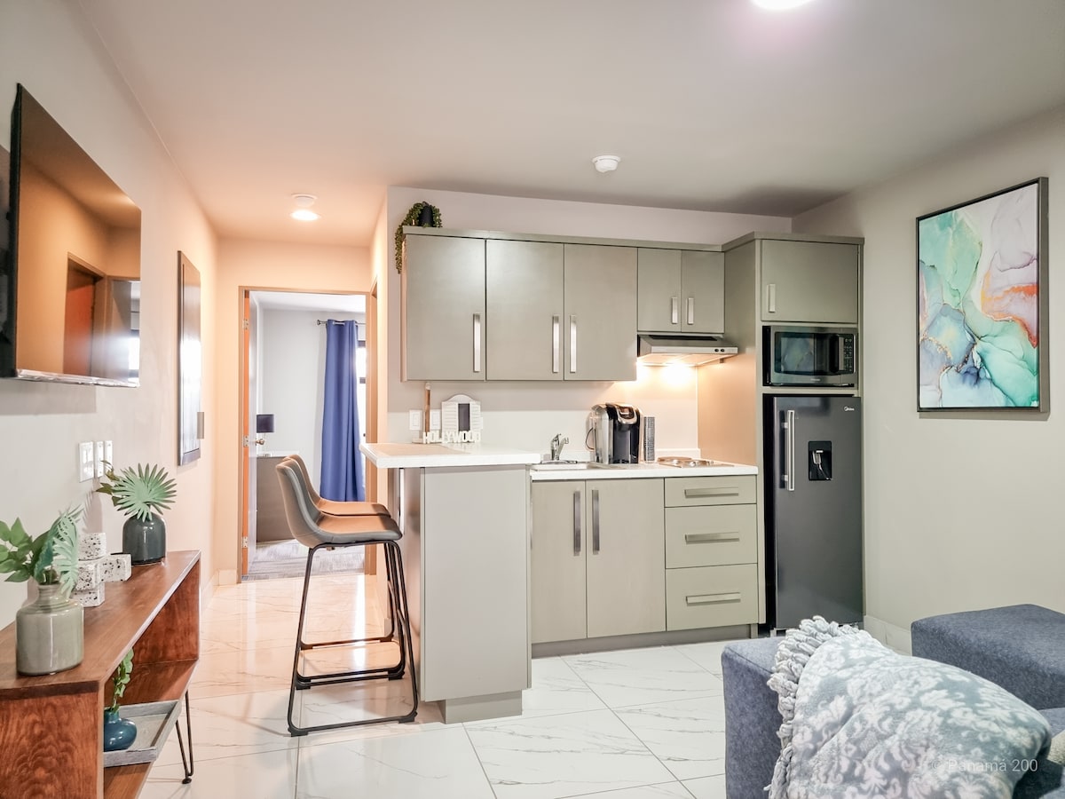 un departamento super cómodo y acogedor, cuenta con una recamara con tv, un baño completo y todo lo necesario para que tengas una bonita estancia