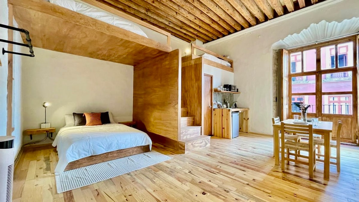 带阳台的特大双人床阁楼,可欣赏墨西哥公园的美景