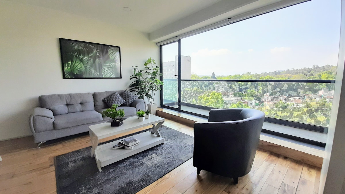 Brand new with a spectacular view Super chic apartment.Located at the most trendy neighborhood in the city. Two blocks away of Metro station. Very convenient with all the basics for a great stay. Great place for couples. You will have the castle of Chapultepec just in front of the window. It's brand new, comfortable and obviously a clean space. Close to bars, restaurants and Reforma, the main avenue in the city.