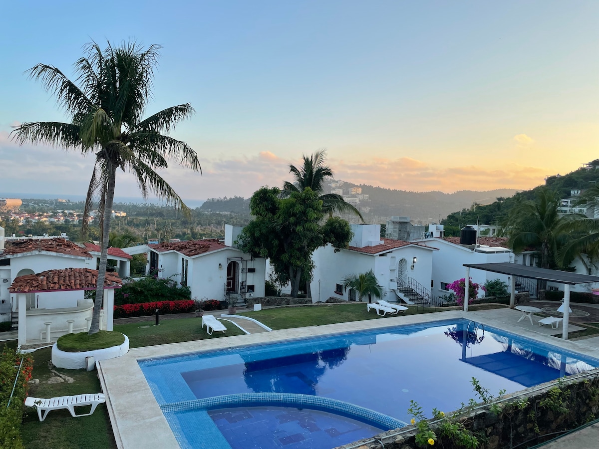 Gorgeous studio apartment above a beautiful an upscale beachfront home on Playa el Tizate, along the “golden zone” between Bucerias and La Cruz de Huanacaxtle, Nay… on the Bay of Banderas north of Puerto Vallarta. Comfy tropical living with incredible views! Featuring a soaring palapa roof & large ocean terrace, Casita Suzi has quality furnishings for an amazing stay. Housekeeping provided twice a week. Ask about privileges for heated pool!