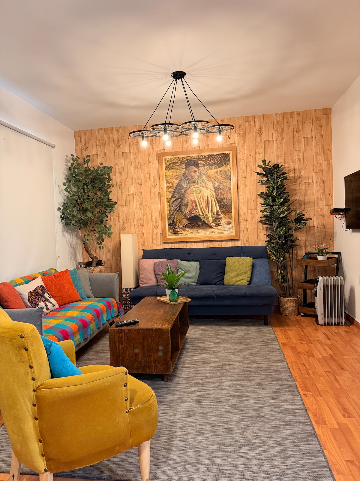 Sip mezcal among jungle plants on a colorful, tiled roof terrace. Honoring the building's '50s charm, this playful, retro-chic home hosts design pieces from all over Mexico. Bright cushions, tropical wallpaper, and a mint green fridge steal the show. Complimentary coffee and breakfast will set you up to explore the neighborhood and the city, while the desk facing the building's interior patio will be the perfect place to work remotely. We've created a tasteful, cozy and comfortable place to make your stay in the city a complete experience. You will find many crafts and art pieces from different regions in Mexico! We serve coffee, and all breakfast essentials that you can enjoy in the breakfast nook inside, or in roof terrace's dining table. The super comfortable queen-size bed and nice sheets will make sure you get a good night's rest, making you ready for the next day in this extraordinary city. The desk in the bedroom is a great spot to do some work or plan your next day, while overlooking the building's interior patio. Fully-equipped kitchen with all essentials and extra goodies for you to enjoy. Comfortable bathroom with good-pressure rain shower, and hot water. Condo's best feature is its big, private rooftop, fully furnished with seating and dining area, and lounge bed to lay down after a busy day exploring the city. It's also perfect for enjoying the city's sunrise and sunset. You'll be surrounded by trees and you'll even get a view of the Chapultepec castle! Additional services are offered which can be arranged after your reservation is confirmed. These include: daily cleaning service, laundry and dry cleaning, meal prep, driver, and others. Just tell us what your needs are and we'll make sure to accommodate them! You'll be in a unique, comfortable apartment located in one of the prime areas of this city, right where Condesa meets Roma, surrounded by main transportation accesses. Guests will have access to the entire apartment, which is accessed by a private entrance. This entrance leads to both apartments that we have, so you will be sharing it with other fellow Airbnb guests. Having a private entrance and staircase, with self check-in and keyless entrance door, will give guests more privacy and comfort during their stay. Check-in and Check-out times will be previously arranged. We are always flexible, trying to accommodate guests' arriving and departing times. Our city guide was made with lots of love, sharing our favorite and most valued places in the city. And we are always available for any questions or help that guests may need during their stay. With its tree-lined streets, two parks, and top bars and restaurants, colonia Condesa, or 'La Condesa', is one of the city's most popular and charming neighborhoods. Castillo de Chapultepec, Paseo de la Reforma, and the Chapultepec metro are all just a short walk away. Walking is the best option, especially since there is so much to see and explore in Condesa and other nearby neighborhoods, like Roma. All main public transportation is just a block away. The metro line that stops here, Chapultepec stop, takes you straight to the city center. If you prefer riding by car, Uber is always the most efficient, and quite cheap, option. We also have a great, trusted driver that offers transportation services to places like Teitihuacán, where you can see the magnificent Pyramids of the Sun and the Moon.