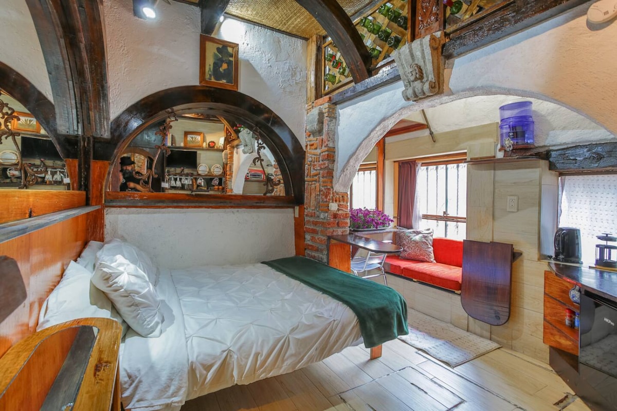 Welcome to La Cava, a cozy 12 m² (130 sq ft) suite that is part of the seven suites of the iconic El Guajolote house in Coyoacán. 📍 Just steps away from the Casa de Frida Kahlo and Coyoacán Plaza. 🔐 Private spaces: kitchen, private bathroom, and living area. 🛏️ Double bed. ✍️ Ideal for couples, writers, or nomads. 🌿 Tranquility and authenticity of the neighborhood.